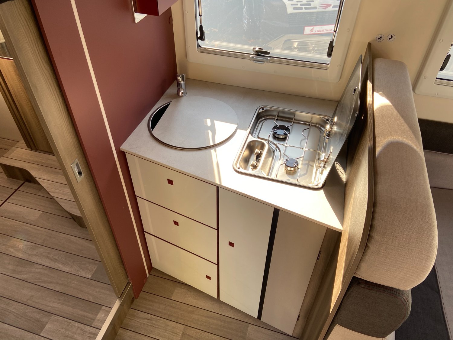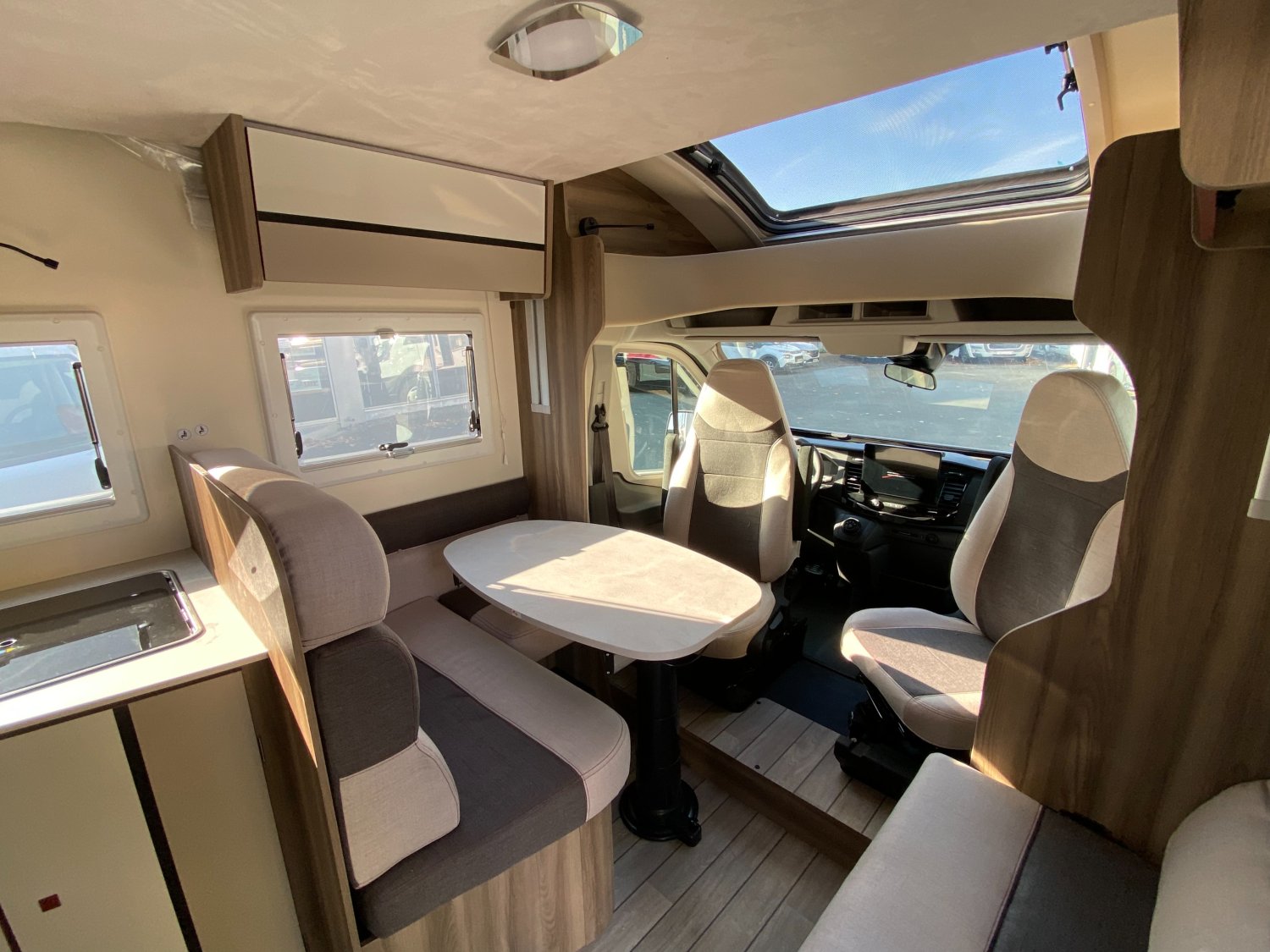 - MOUSTIQUAIRE DE PORTE CELLULE, - REFRIGERATEUR TRIMIXTE, - CLIMATISATION AUTOMATIQUE CABINE, - FEUX ARRIERE FULL LED, - PRISES USB AU NIVEAU DU LIT ARRIERE ET PRISE 220 V SOUTE, - 5 COUCHAGES AVEC LIT DE PAVILLON ELECTRIQUE ET LIT DINETTE, - ISOFIX, - MODEM 5 G AVEC MISES A JOUR AUTOMATIQUES VIA SMARTPHONE, LE PACK KRONOS FORD COMPREND :, - MOTORISATION 165 CV, - FEUX DIURNES "HIGH SERIES", - BOITE A GANTS AVEC SERRURE, - HABILLAGE INTERIEUR ET TABLEAU DE BORD FINITION TREND, - PARE-CHOCS ET BAS DE CAISSE COULEUR CARROSSERIE, - CHAUFFAGE TRUMA COMBI 4 GAZ, - PORTE DE CELLULE XL CENTRALISEE, - PANNEAU DE CONTROLE CP PLUS, - COUVERCLE D'EVIER / PLANCHE A DECOUPER, - PANNEAU SOLAIRE 200 W AVEC REGULATEUR MPPT, - SKYROOF, - STORES PLISSES CABINE, - HOUSSES DE SIEGE CABINE, LE PACK OPEN AIR COMPREND :, - STORE EXTERIEUR COULEUR ANTHRACITE, - PRISE DE GAZ EXTERNE, - DOUCHETTE EXTERIEURE, EQUIPEMENTS DE SERIE :, - REGULATEUR DE VITESSE CRUISE CONTROL, - FEUX ANTIBROUILLARD, - ALLUMAGE AUTOMATIQUE DES PHARES, - CAMERA DE RECUL, - ALERTE ET ASSISTANCE DE MAINTIEN DANS LA VOIE, - RECONNAISSANCE DES PANNEAUX DE SIGNALISATION, - ECRAN TACTILE 12" AVEC SYSTEME SYNC 4