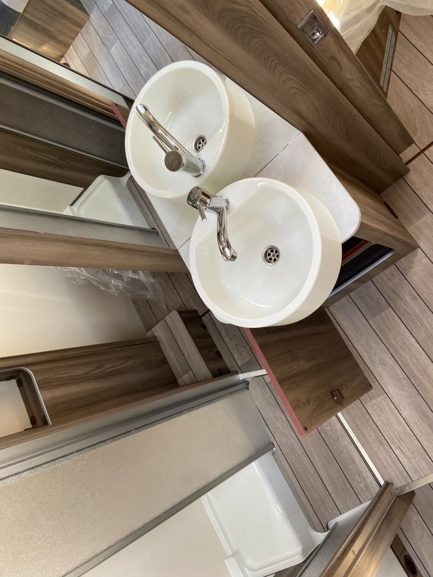 Modèle 2026 de la marque Roller Team, Camping car profilé Lit central + Lit de pavillon, implantation moderne avec une vasque centrale ! Le tout agrémenté par un moteur 165ch et une boîte automatique !