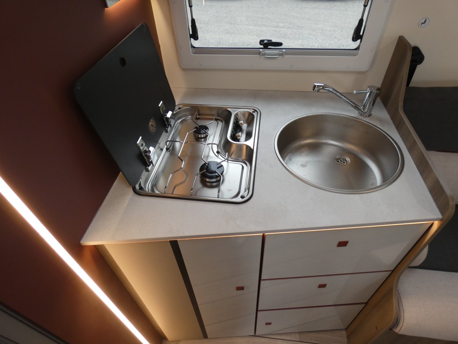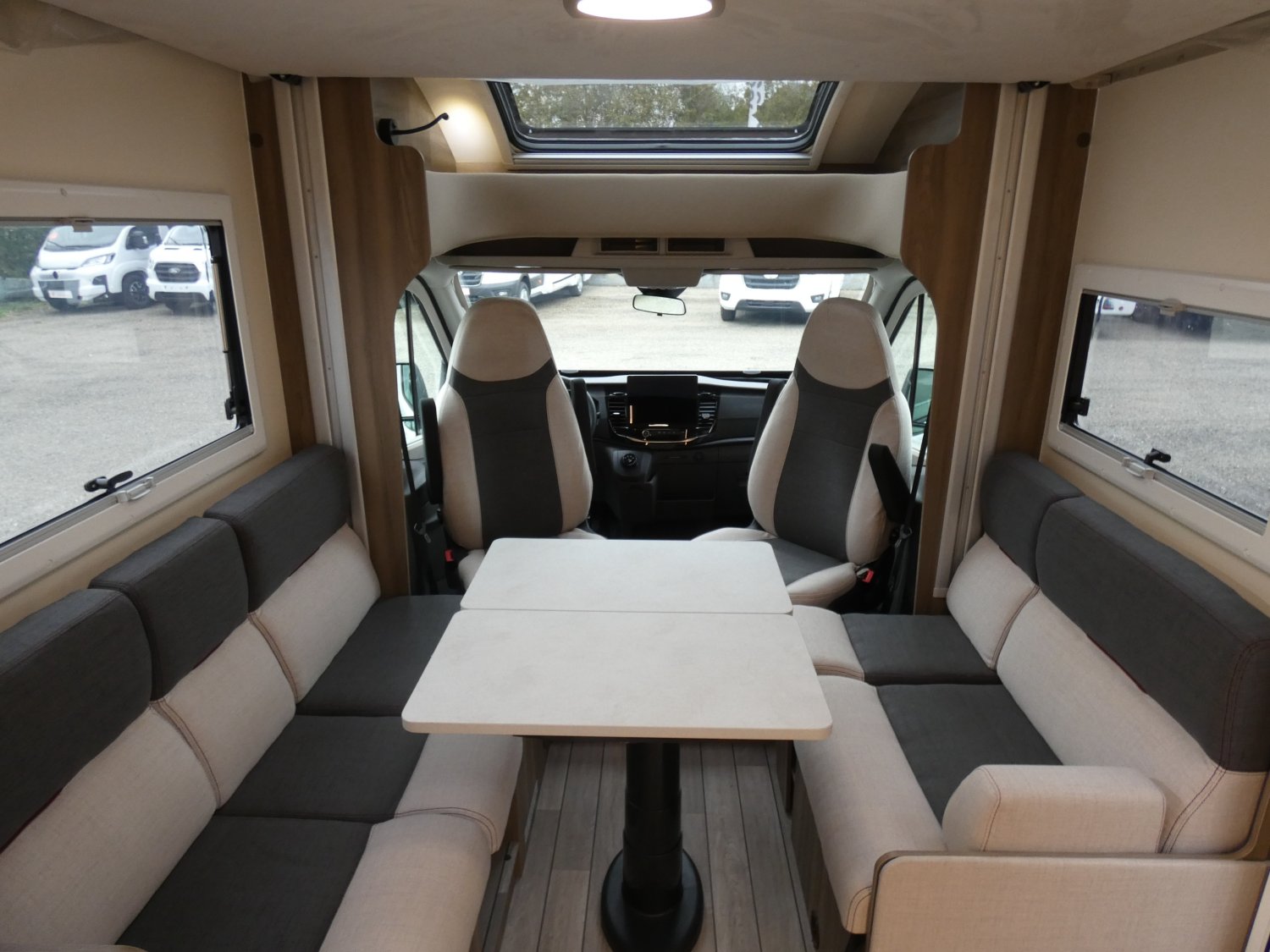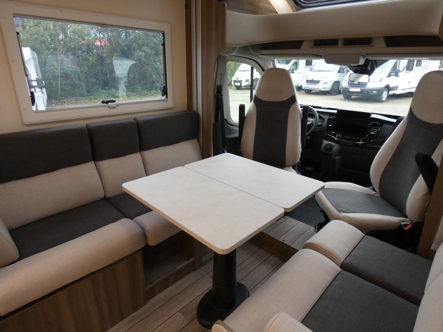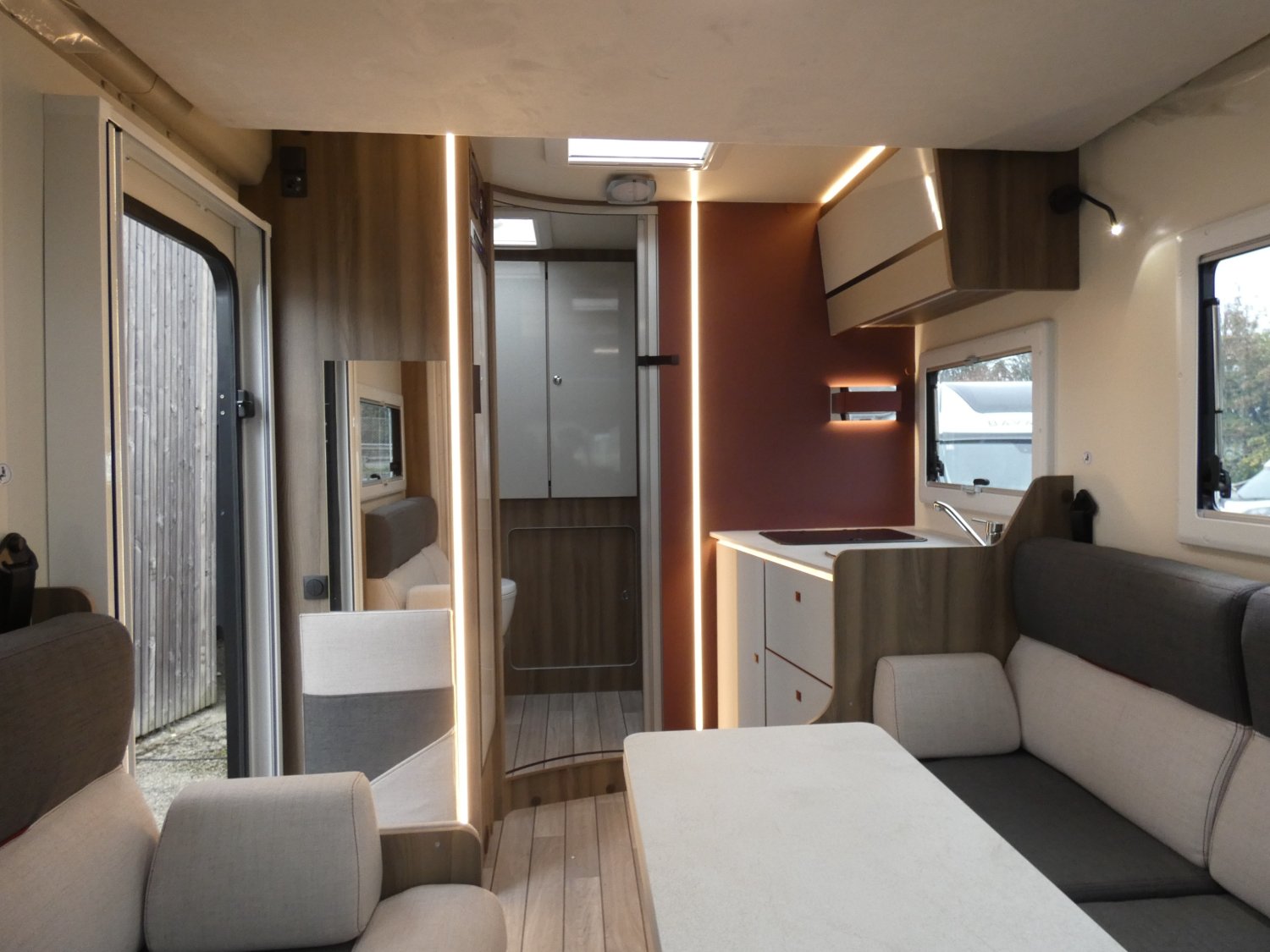 ROLLER TEAM ressort son profilé compact KRONOS FIT 230 TL en 2026, avec en plus cette année, une porte de douche et des entourages d'ouvertures extérieures noires (pour un style plus contemporain). Ce modèle est équipé en option du pack OPEN AIR et de la boîte de vitesses automatique.