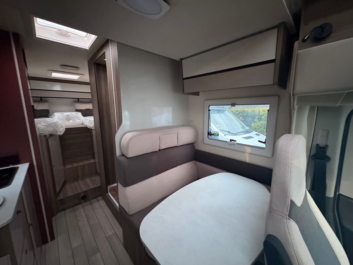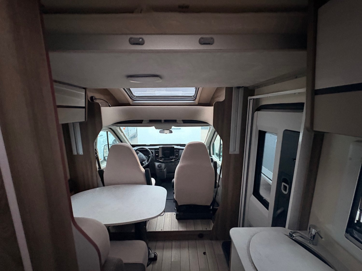 Porte XL avec 2 points de fermeture,baie et centralisation, PACK KRONOS, Motorisation 165CV, Feux diurnes, Stores occultants plissés cabine, Housses de sièges cabine, PANNEAU SOLAIRE 200W, STATION MULTIMEDIA + CAMERA DE RECUL, - DOUCHETTE GARAGE, - PRISE GAZ EXTERIEUR, Boite à gants avec serrure, Habillage intérieur et tableau de bord finition "Trend", Pare-chocs et bas de caisse latéraux peints, PACK OPEN AIR, - STORE EXTERIEUR, Panneau solaire 200W avec régulateur MPPT, Panneau de commande CP-Plus, Skyroof, Couvercle évier