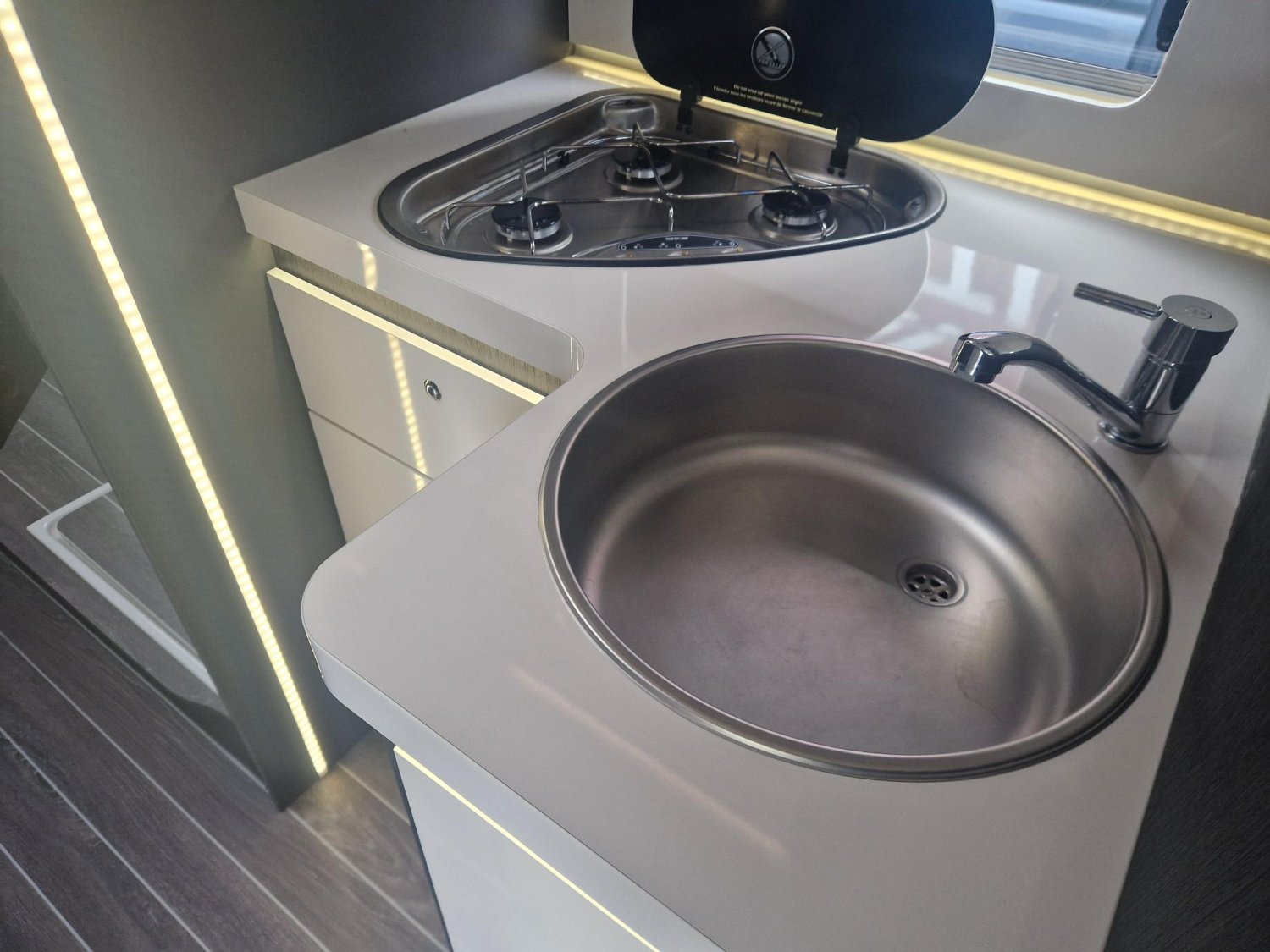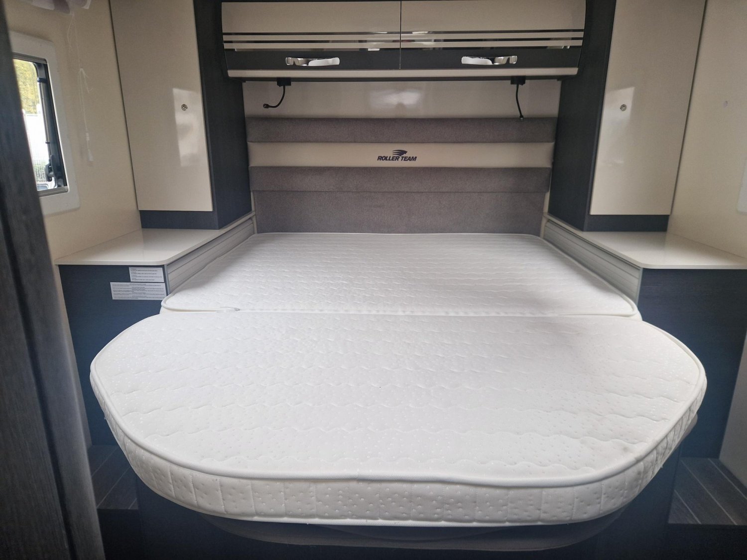 Profilé de marque leader, avec lit central modulable en hauterur et lit de pavillon électrique 2 places. 5 couchages et 5 places CG, état proche du neuf, bien équipé avec notamment clim cellule 220 W, sur une base Ford 2 l 170 CV en boite manuelle.