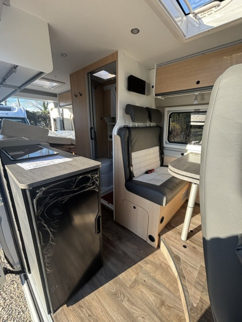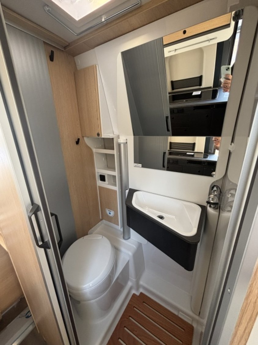 SALLE DE BAIN VARIO - BAIES ET PORTES A PROJECTION AVEC DOUBLE VITRAGE STORES OCCULTANTS ET MOUSTIQUAIRES - FONCTION START&STOP ET BOOSTER - CLIMATISATION CABINE- RÉGULATEUR DE VITESSE - PNEUMATIQUES M+S* CAMPING - TRACTION AVANT ET TRACTION + AVEC HILL DESCEND ASSISTANT- SKYVIEW - BATTERIE CELLULE AMG HAUTE PERFORMANCE - CHAUFFAGE GAZ COMBI 4 - FEUX ANTIBROUILLARDS- PRISES USB + PRISES 220V - ESC - ASR - CWA - ABS EBD ESP ESC - STABILISATEURS D ESSIEUX AVANT ET ARRIERE -CHAUFFAGE AIR PULSE - STORE - PACK SOLEIL - LARGE MARCHEPIED RALLONGE DE TABLE DINETTE -ISOFIX POUR 2 SIEGES - ESPACES DE RANGEMENTS VOLUMINEUX - LIT ARRIERE A LATTES - MATELAS HAUTE QUALITE -