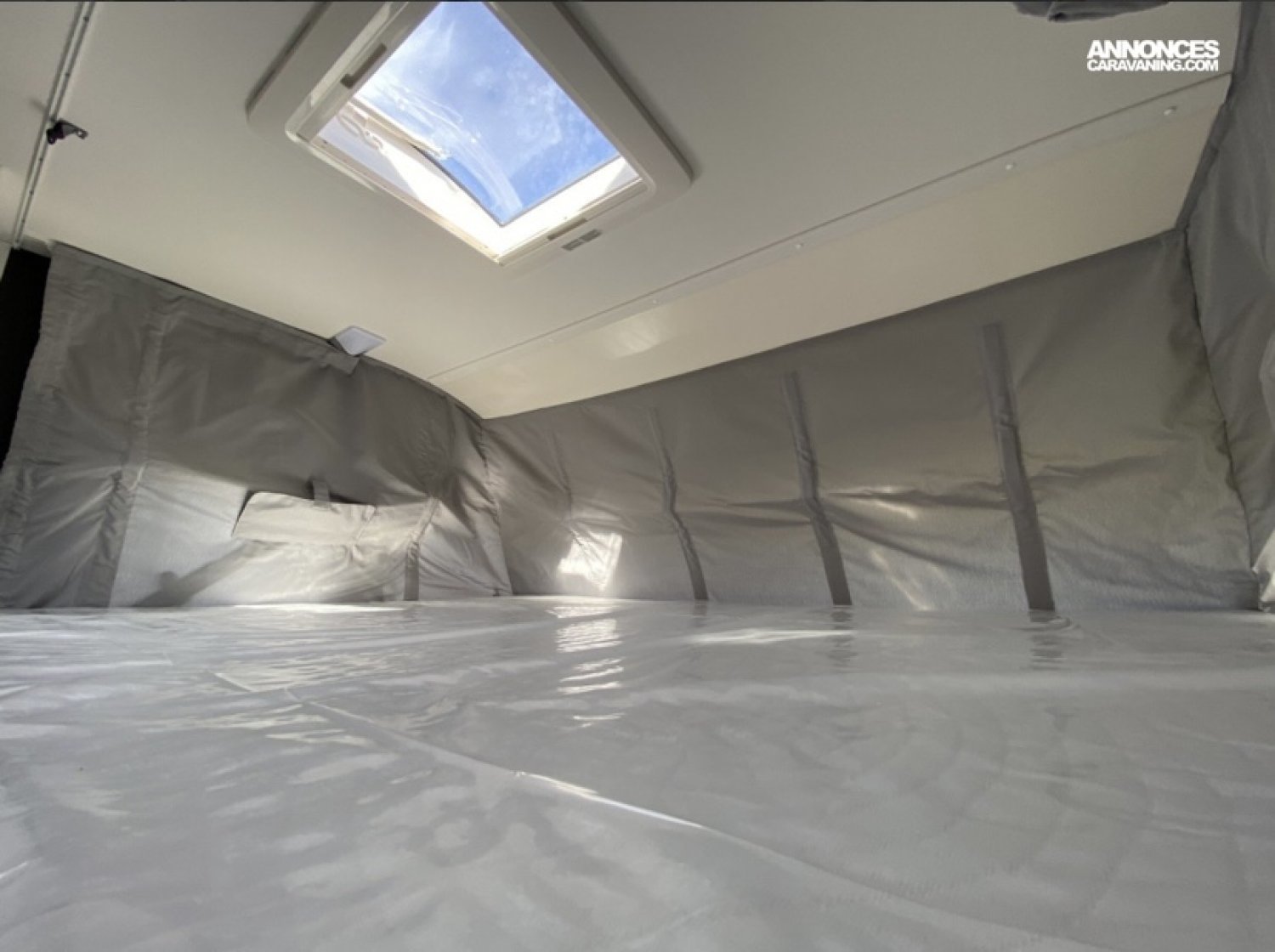 Une partie lit pavillon grand matelas 2 personnes très confortable au dessus de la cabine et très agréable avec son lanterneau plus store occutant /moustiquaire - bordure sécurisée et échelle pour y accéder