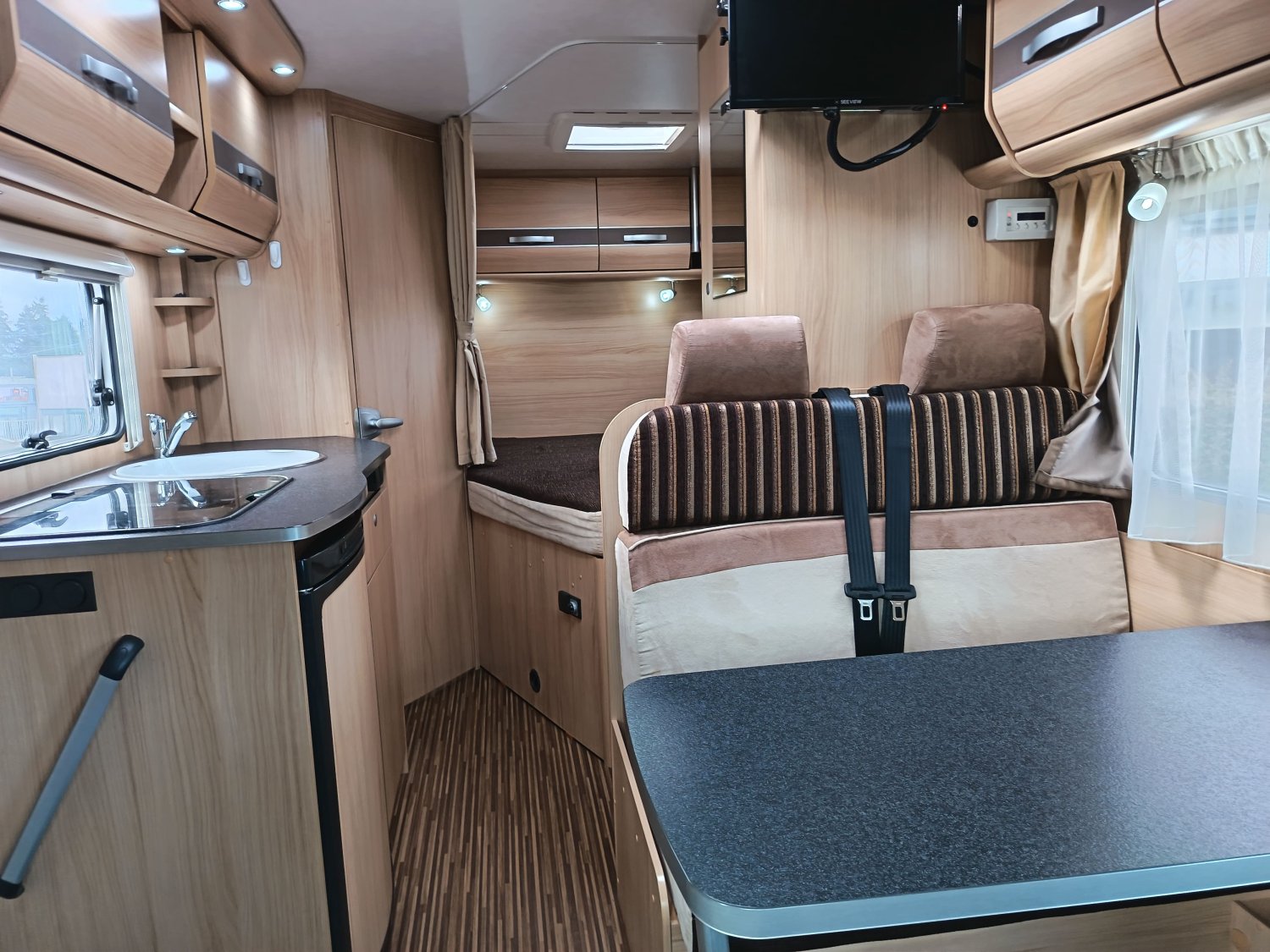 STORE EXTERIEUR, CAMERA DE RECUL, CLIMATISATION CABINE, MOUSTIQUAIRE DE PORTE, PANNEAU SOLAIRE, PARABOLE AUTOMATIQUE, PORTE VELOS, STATION MULTIMEDIA, ECLAIRAGE EXTERIEUR, MARCHEPIED ELECTRIQUE, TELEVISION