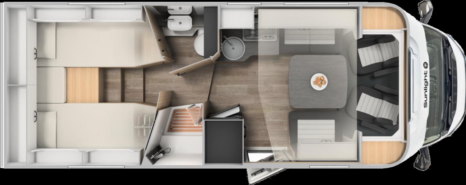 Camping-car Sunlight Lits jumeaux dispo 04/26 (photos d’illustrations, store extérieur en option)
