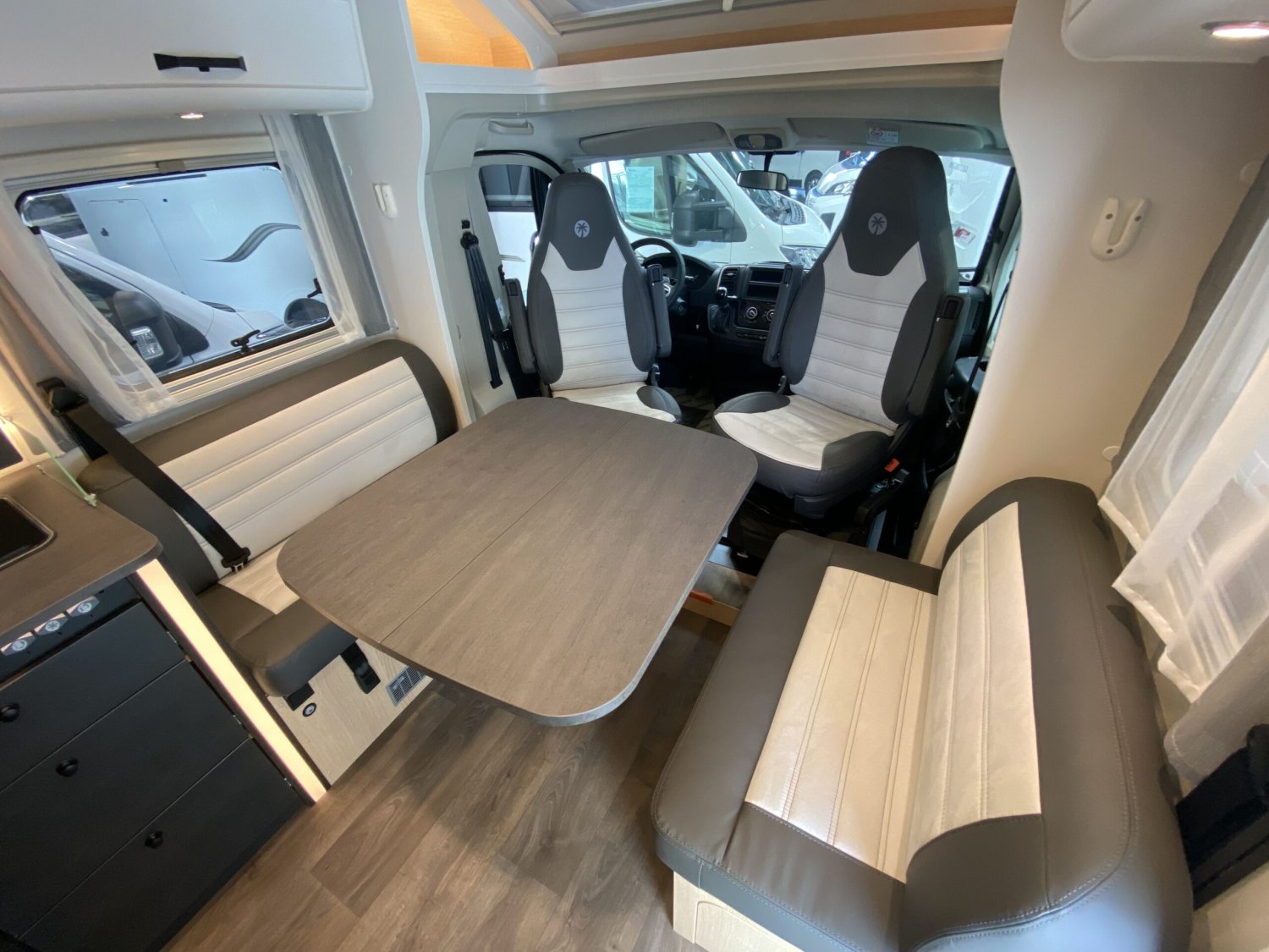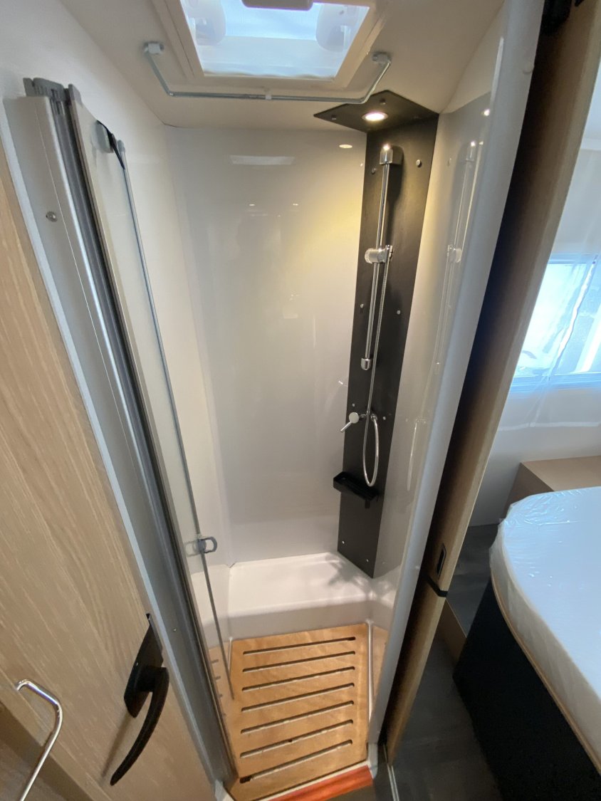 Boîte automatiqueLit central arrièreLit de pavillon électriqueSalon avec banquette face-à-face et table modulableCuisine équipée (plaque de cuisson, évier, réfrigérateur 156 L avec freezer)Salle d’eau avec douche séparée et WC à cassette pivotantChauffage Combi 6 (gaz)Lanterneaux panoramiques et moustiquaires aux ouverturesPanneau solaire 100 W avec régulateur MPPTBatterie cellule AGM haute performance (95 Ah)Grandes baies à cadre avec stores et moustiquairesMarchepied électriqueÉclairage LED intérieur et extérieurPrises 230 V / 12 V / USB intégréesGrande soute de rangement avec éclairage et anneaux d’arrimage