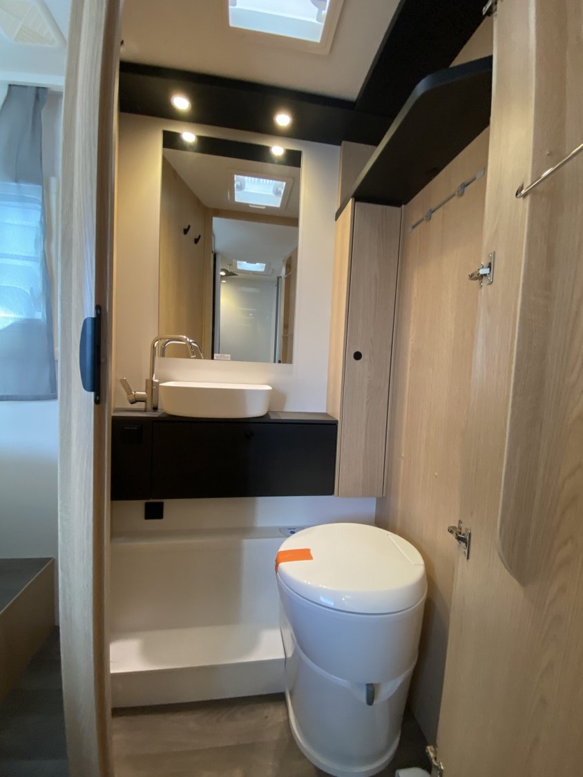 L’aménagement allie cuisine fonctionnelle, salle d’eau avec douche séparée et WC, ainsi que des rangements bien répartis pour optimiser chaque recoin. L’ambiance intérieure Adventure apporte un style chaleureux et pratique, pensé pour les séjours de courte ou longue durée.