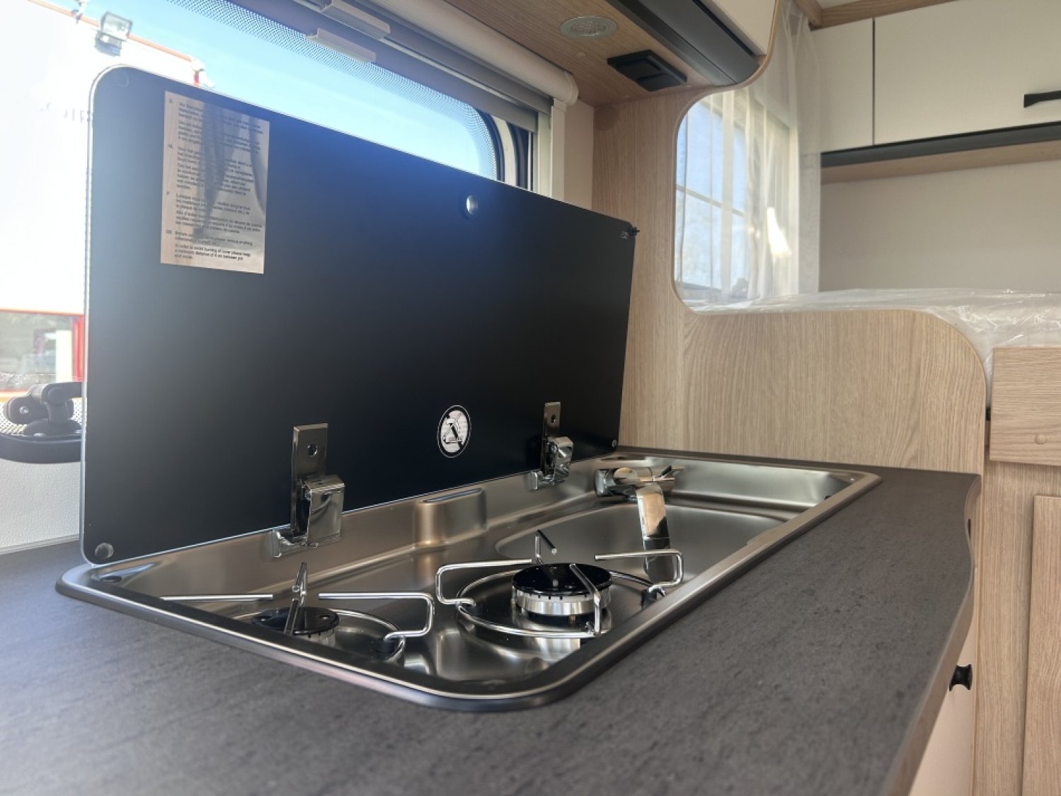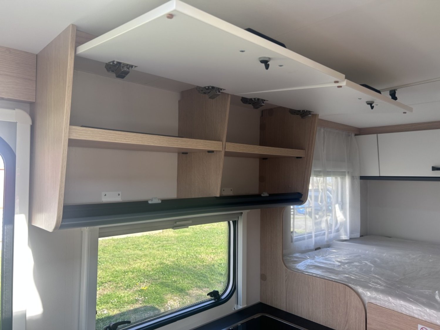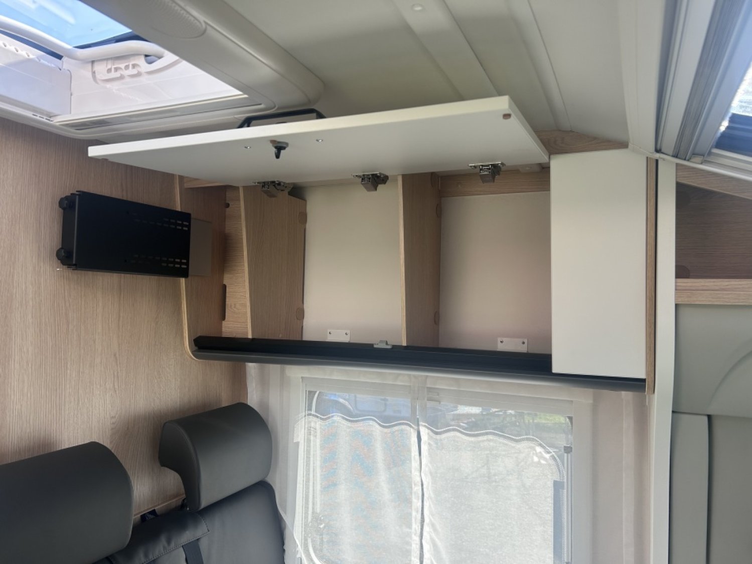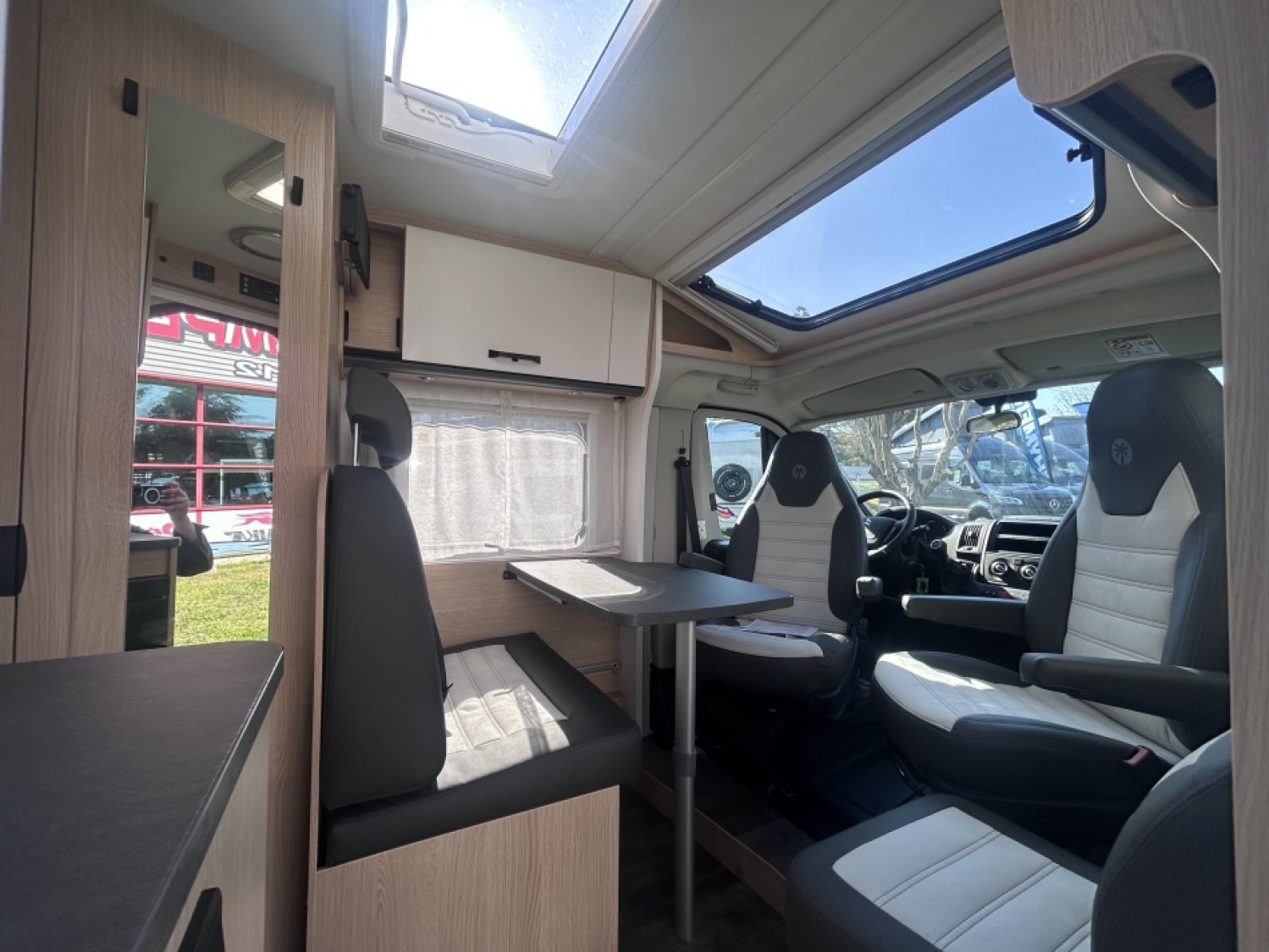 PACK BASIC : LANTERNEAU MIDI HEKI 700*500 AU DESSUS DE LA DINETTE, PRE CÂBLAGE CAMERA DE RECUL, TOIT PANORAMIQUE AU DESSUS DE LA DINETTE, VESTIAIRE, MOUSTIQUAIRE DE PORTE, BANDEAU LUMINEUX