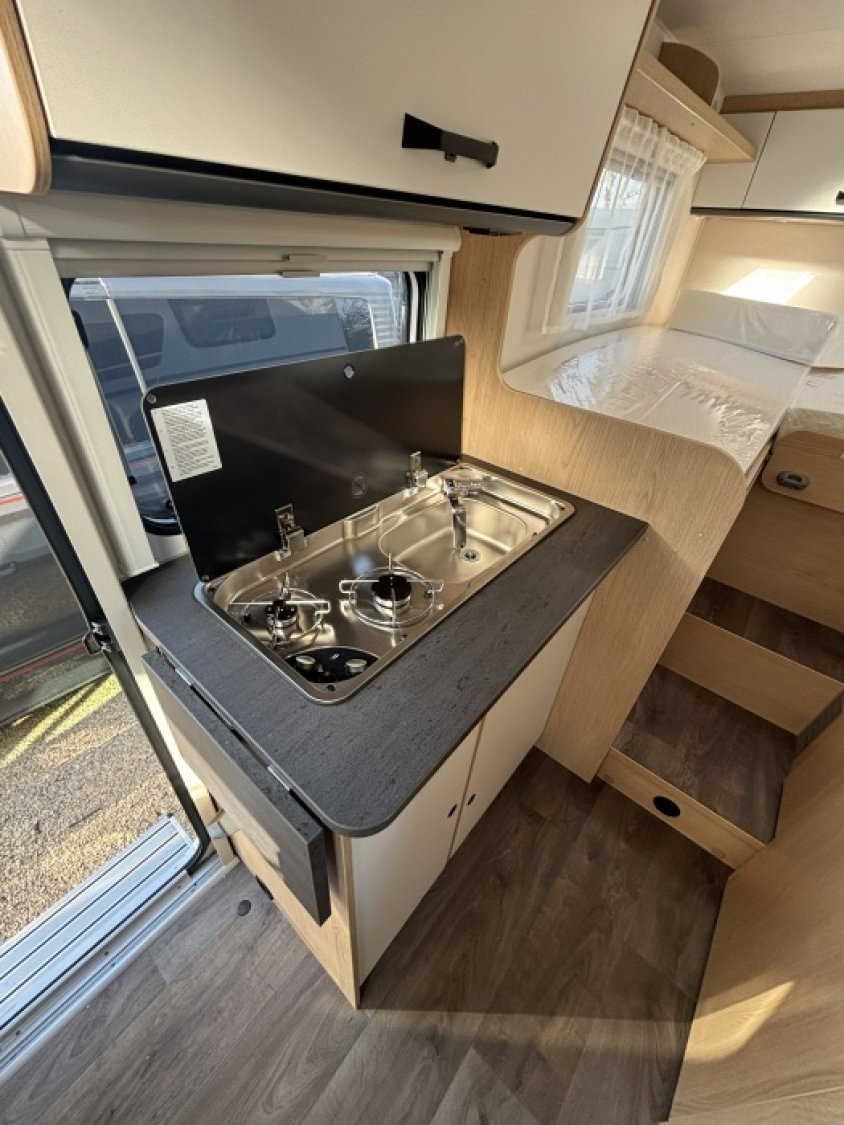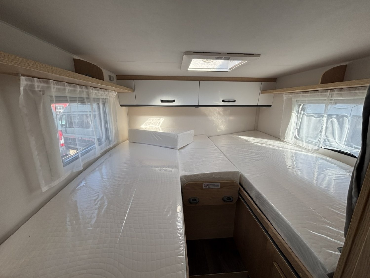 PANNEAU SOLAIRE - CABINET DE TOILETTE VARIO - MODIFICATION DES LITS JUMEAUX EN LIT DOUBLE - TOIT ET FACE EN POLYESTER TRES RESISTANT - PAROIS LATERALES EN TOLE ALUMINIUM - PARE CHOC ARRIERE DESIGN, EN 3 PARTIES, AVEC ECLAIRAGE FULL LED - SOMMIERS A LATTES EN BOIS AVEC MATELAS DE HAUTE QUALITE POUR UN CONFORT EXCEPTIONNEL - RALLONGE DE TABLE - SOUTE ARRIERE SPACIEUSE AVEC TAPIS ANTI-DERAPANT, ANNEAUX D ARRIMAGE ET ECLAIRAGE INTERIEUR - BATTERIE CELLULE 95AH HAUTE PERFORMANCE ET SANS ENTRETIEN (95 ah) - COMMUTATEUR AUTOMATIQUE POUR BATTERIE CELLULE ET PORTEUR - SUPPORT ECRAN PLAT -