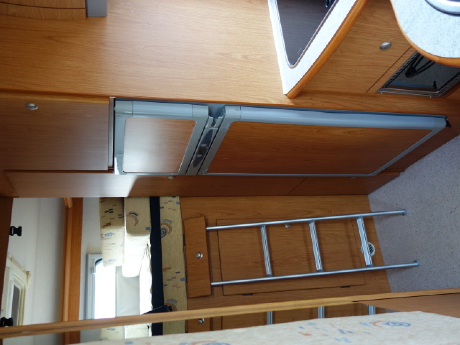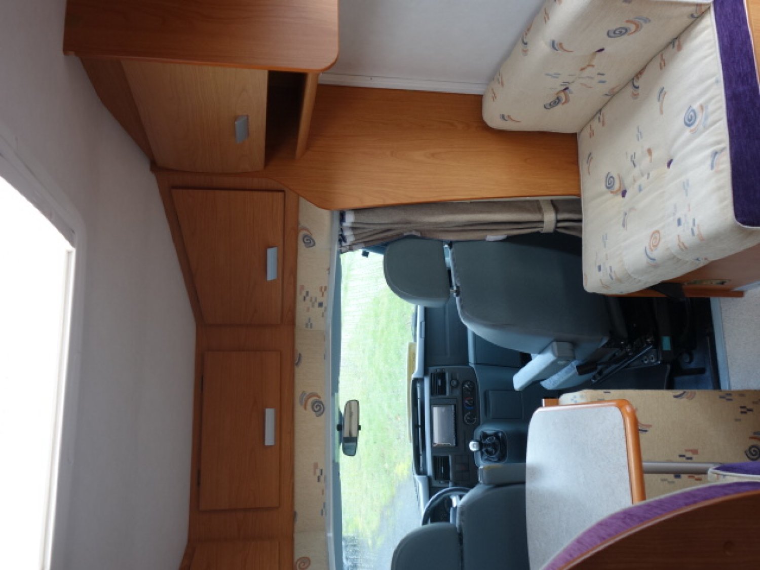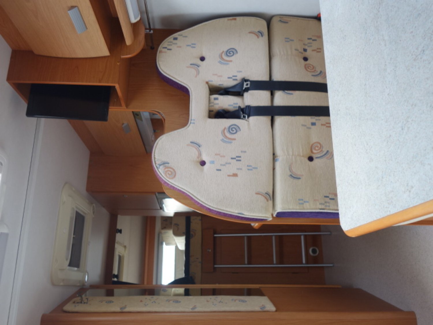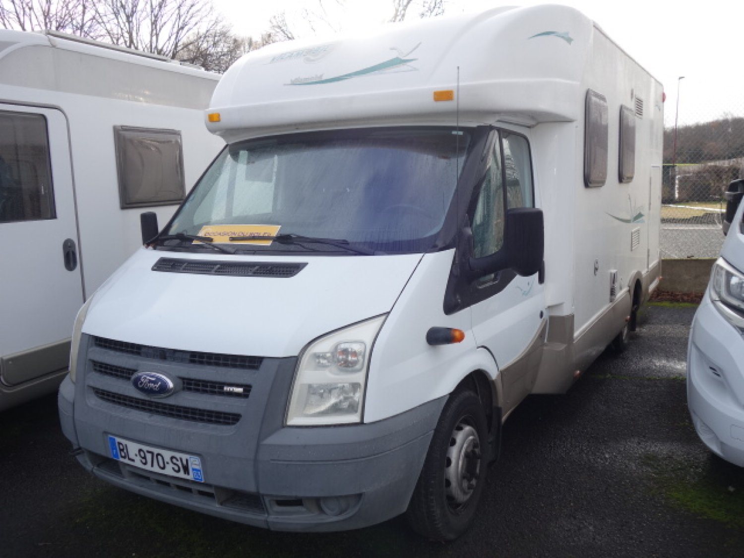 Profilé sur porteur FORD roues jumelées, grand lit arrière transversal, dinette transformable en couchage, cabinet de toilette avec WC et douche, équiupements: store, panneau solaire, antenne satellite manuelle, TV, caméra de recul, auto radio, porte vélos, four.