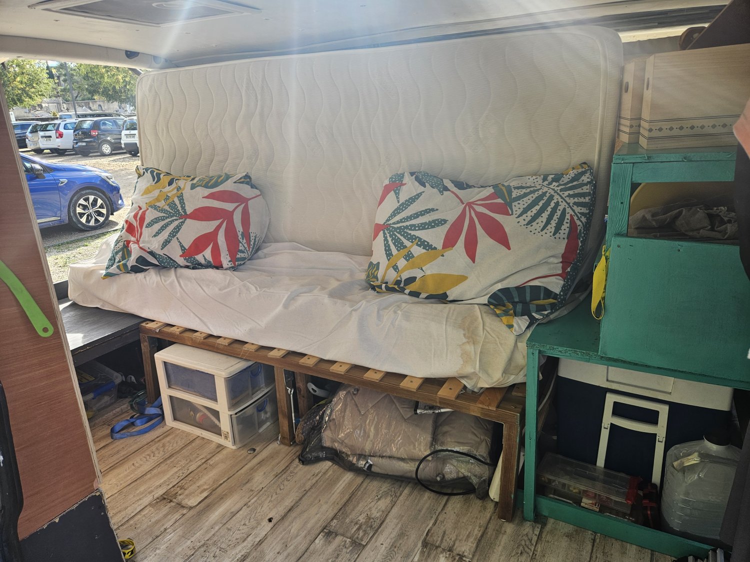 Aménagé par un particulier pour le voyage et la liberté : banquette convertible 2 places, isolation aluminium, un panneau solaire de 200 Watt sur le toit.