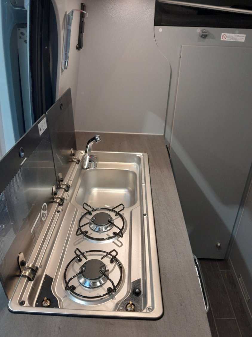 Store, Truma 6D, frigo à compression 75L, occultants, roue de secours, grande soute idéal pour deux motos ou un quad.