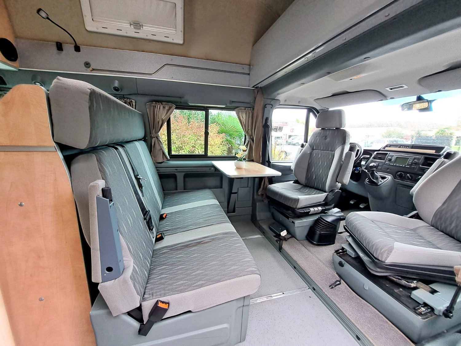 WESTFALIA Fourgon 4 couchages, Diesel - 2008 - 170 609 km - 140 CV, 24 900 €. Porteur : Ford Transit 2,4 l 140 ch L x l x h : 4.90 x 1.97 x 2.85 m PTAC/CU (kg) : 3000/580 PTRA (kg) 5000 Places C.G./nuit/repas : 5/4/4 Clim cabine : Oui Carrosserie monocoque : fourgon et rehausse d'origine Cuisine : avec réchaud 2 feux - réfrigérateur 40 litres Nombreux rangements Couchage : Lit dinette (200 x 135 cm et x cm), Lit de pavillon Escamotable (200 x 145 cm) Sièges pivotants à l'avant radars de recul Attelage Véhicule "passe partout" grâce à ses petites dimensions, mais idéalement pensé pour un maximum de confort et d'espace intérieur. A saisir véhicule rare sur le marché ! Révisé mécanique et Cellule,