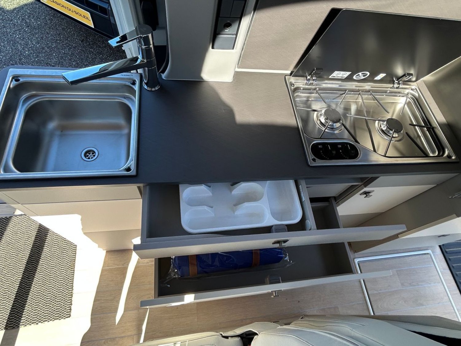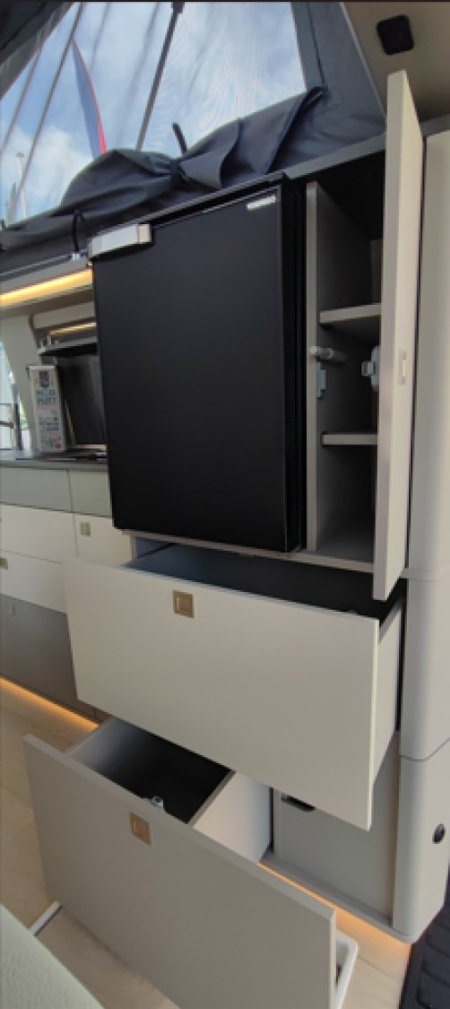 Tout équipé, ce van aménagé haut de gamme offre une autonomie complète grâce à ses nombreux équipements, répondant aux aspirations d’une nouvelle génération de voyageurs nomades.