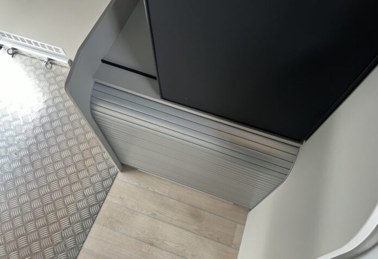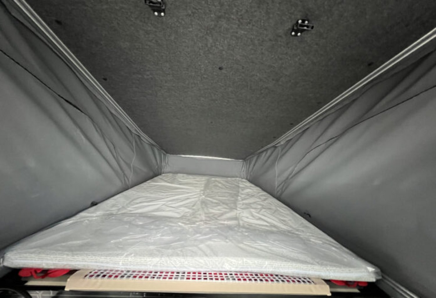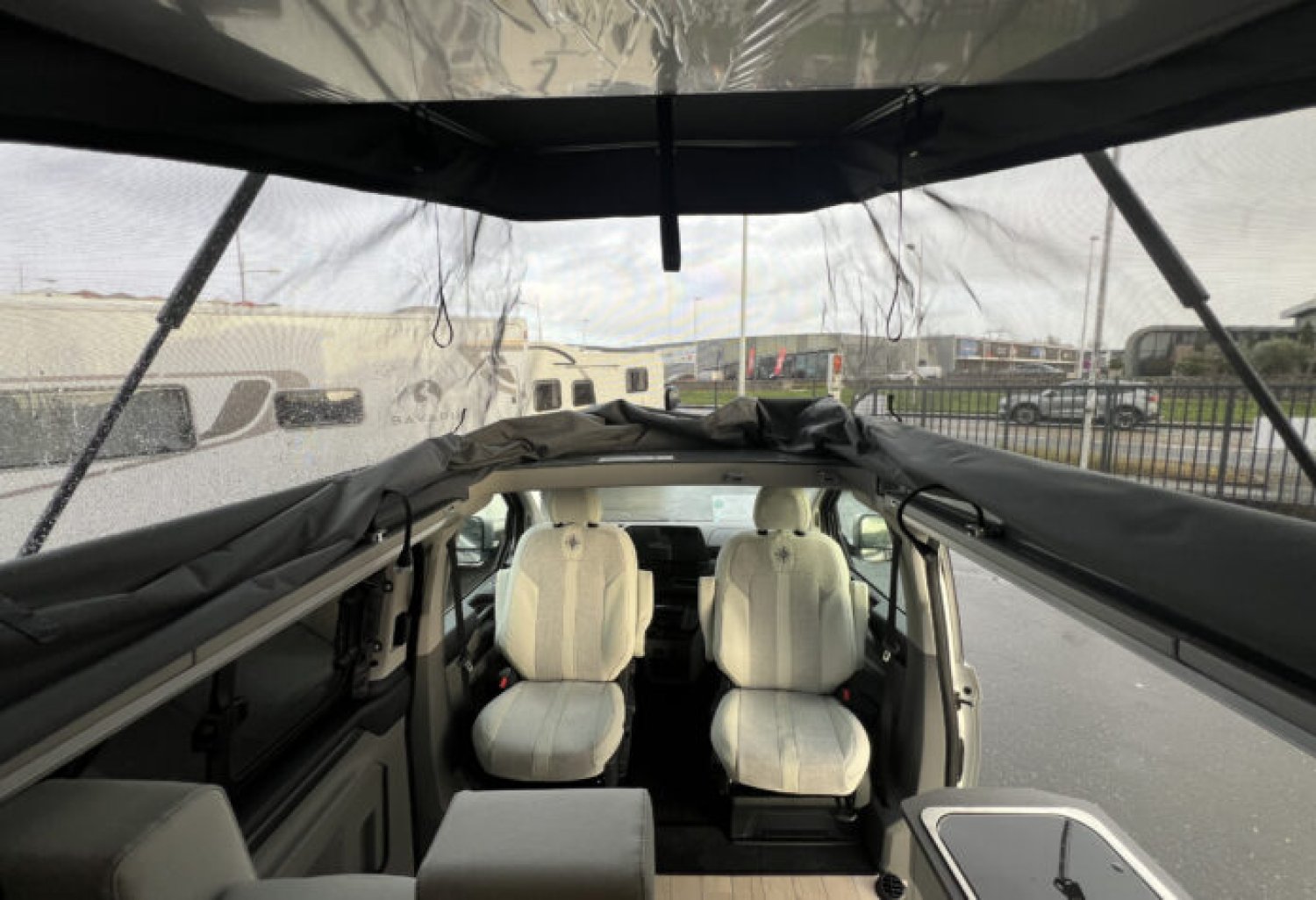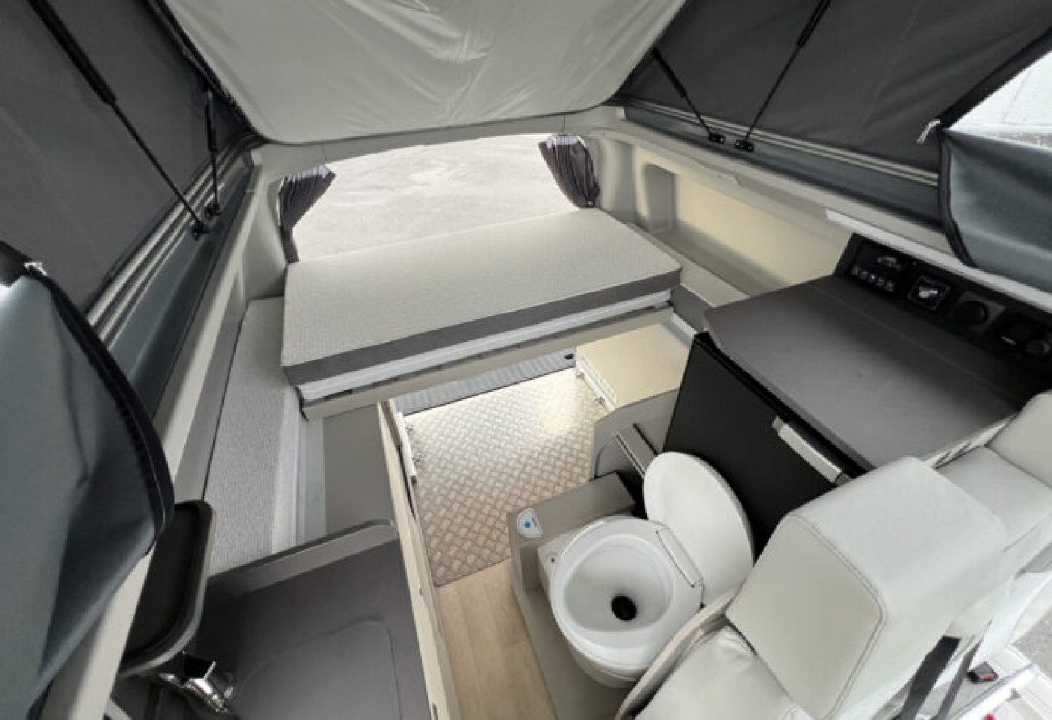 Pack Kipling (Soit : Batterie cellule AGM 92 Ah, chauffe-eau pour douche et évier, échelle de lit, kit outdoor (tables + 2 chaises de camping), portes latérales coulissantes droite et gauche, pré-disposition électrique panneau solaire et attelage, rails latéraux soute avec crochets d'arrimage, rideaux arrière latéraux opacifiant, sellerie bi-matière « Missouri », tapis de cabine, variateur d'intensité lumière LED)