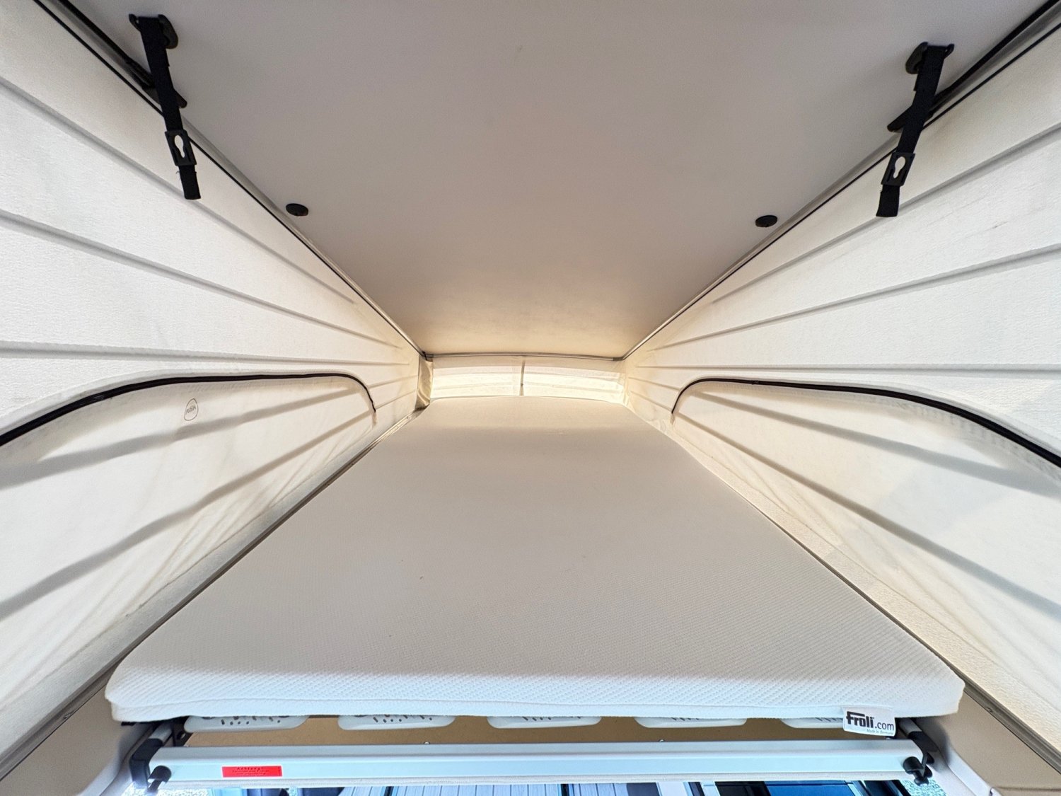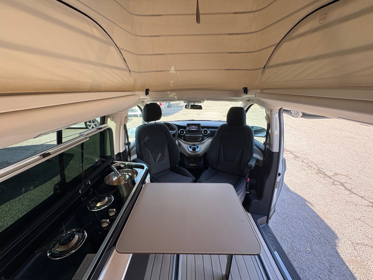 Autonomie et discrétion assurées grâce à la gazinière deux feux, réfrigérateur à compression et stores occultants sur toutes les vitres.