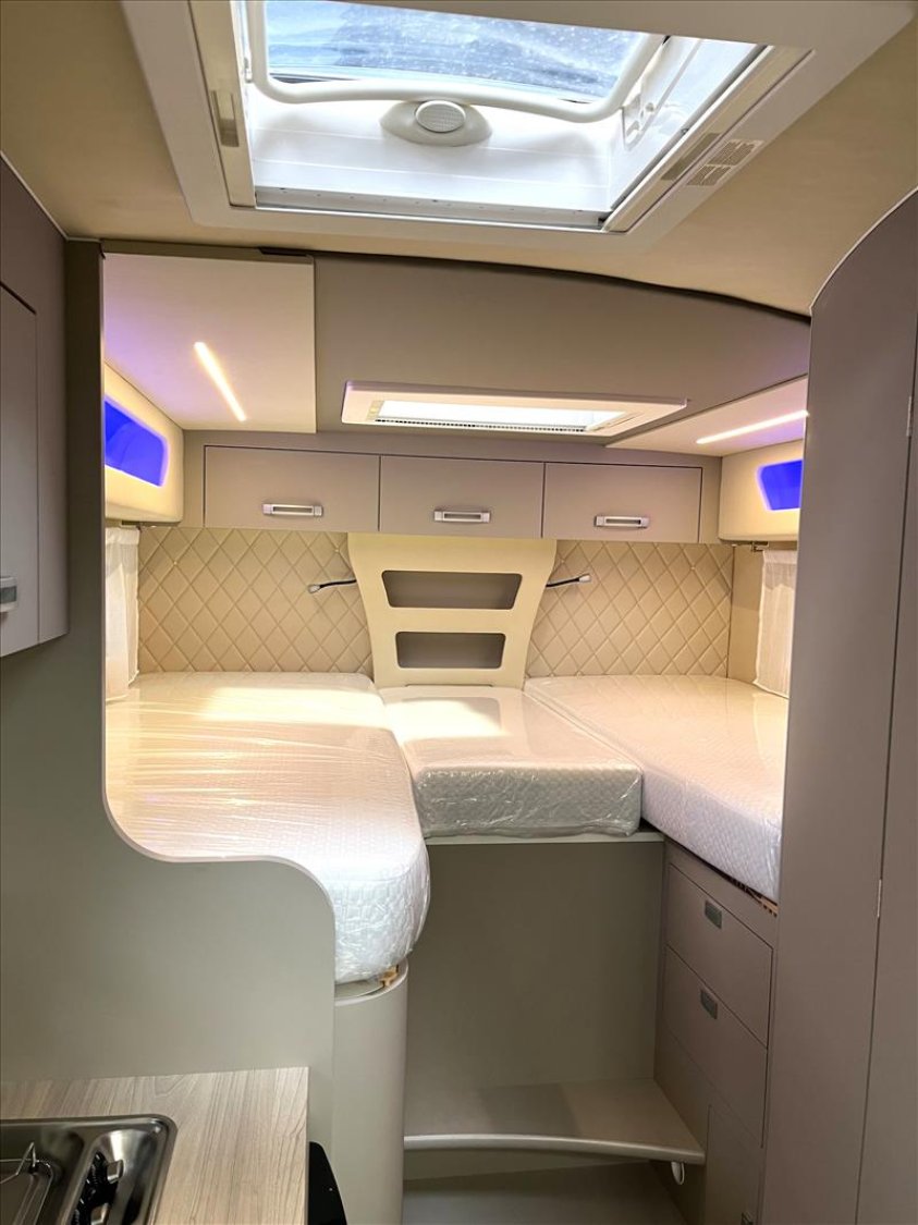Verrouillage centralisé avec télécommande multifonctions, Vitres athermiques, Table dînette ovale XL avec système coulissant et pivotant 3, Réfrigérateur trivalent, Régulateur de gaz Truma DuoControl avec capteur de choc, Lit de pavillon longitudinal parental, breveté, Chauffage Truma Combi Gas 4E - HYBRID, DRL (boîtier feux de jour), Fix & Go, Rideau cabine thermique, Lanterneau MiniHeki Seitz avec occultants plissés et moustiq, WC à cassette orientable en céramique, Passage sans dénivelé entre la cabine avant et la cellule, Lève-vitres électrique, Occulants plissés et moustiquaire enroulable, Réservoirs isolés et chauffés, Pompe à eau SHURFLO pressostatique hautes performances, Interrupteur magnétothermique différentiel