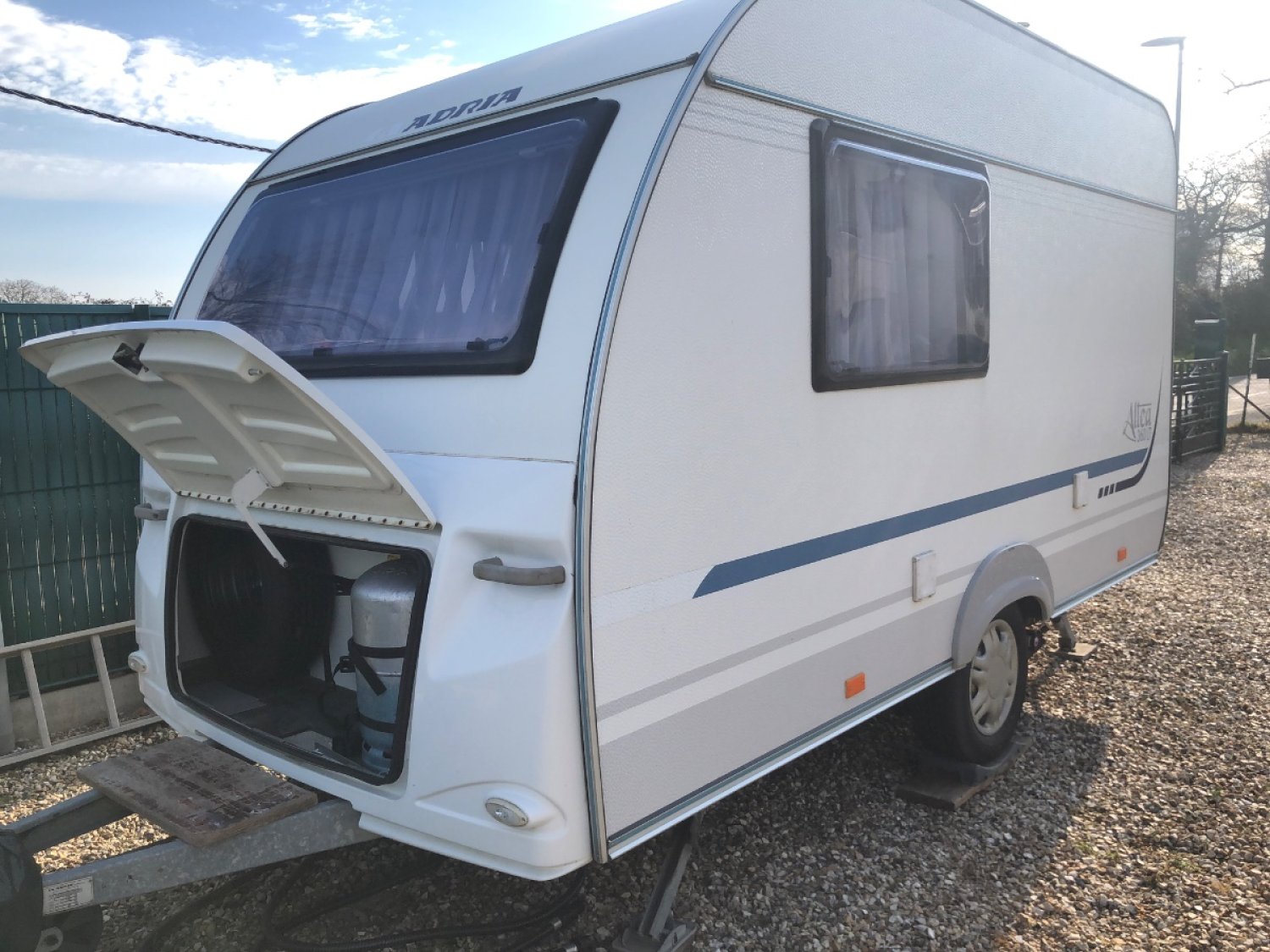 A vendre caravane Adria Altéa 360 LT mise en circulation 10/09/2011 avec déplace caravane vendue avec auvent et tapis de sol. Table transformable en grand lit 3 couchages. wc a cassette électrique lavabo frigo trimix cuisine 3 bruleurs gaz cumulus eau chaude truma réservoir eau propre 50l stabilisateur alko roue de secours auvent profondeur 2,40 câble rallonge 50 m.