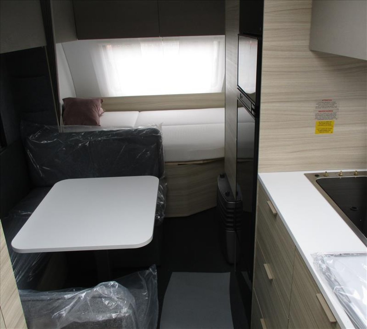 Réfrigérateur 167L, Table relevable avec pied télescopique à la dinette en "U", Coffre avant sur verrins, Boiler 5L truma terme, Portillon latéral, Chauffage à gaz air pulsé, Fenêtre vitrage double paroi avant, Jantes en acier, Lanterneau mini heki 400*400, Vidange centrale d'eaux usées, Tole polyester antigrêle, Cache flèche, Roue de secours, Moustiquaire&store obscurants sauf toilette, Porte d'entrée 2 pièce sans fenêtre, Prise de courant 230V, 4 coussins décoratifs, Réchaud 3 feux avec allumage électrique, Vérins stabilisateurs renforcés, WC cassette, Eau chaude, ALKO 3004, Chassis ALKO