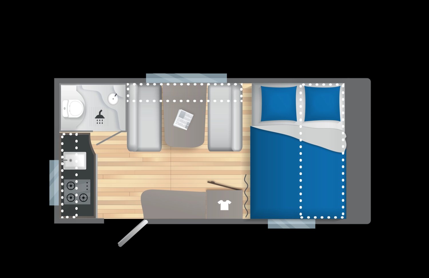 - Dimensions : L 4.77m x l 2.1m