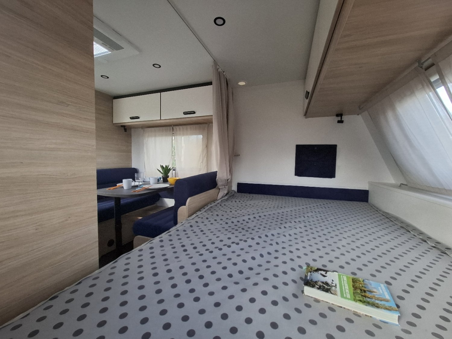 Une caravane familiale à l'implantation classique qui vous séduira par son excellent niveau d'équipements et son rapport QUALITE/PRIX maîtrisé : un grand réfrigérateur, des lits superposés confortables pour les enfants et un cabinet de toilette spacieux. Pour la mise à disposition, elle sera équipée d'un auvent classique ou d'un auvent gonflable ou d'un store posé (voir le détail des produits proposés en bas d'annonce) ; c'est vous qui choisissez !