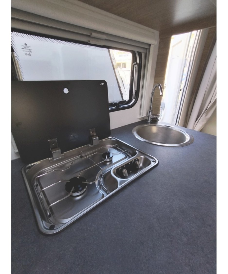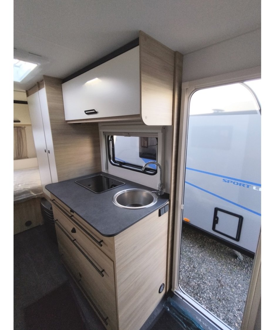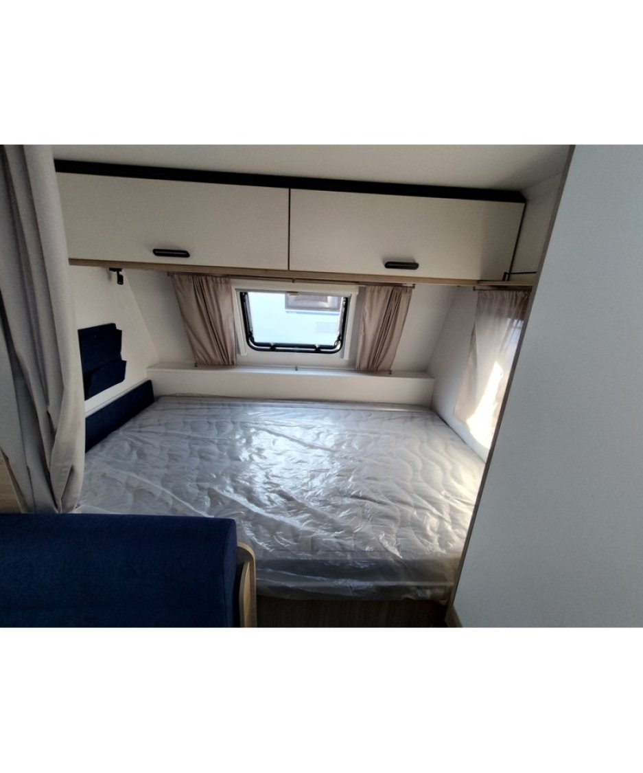 Dotée de lits superposés confortables à l'arrière, d'un grand lit à lavant et d'une dinette transformable cette caravane est pensée pour accueillir toute la famille.
