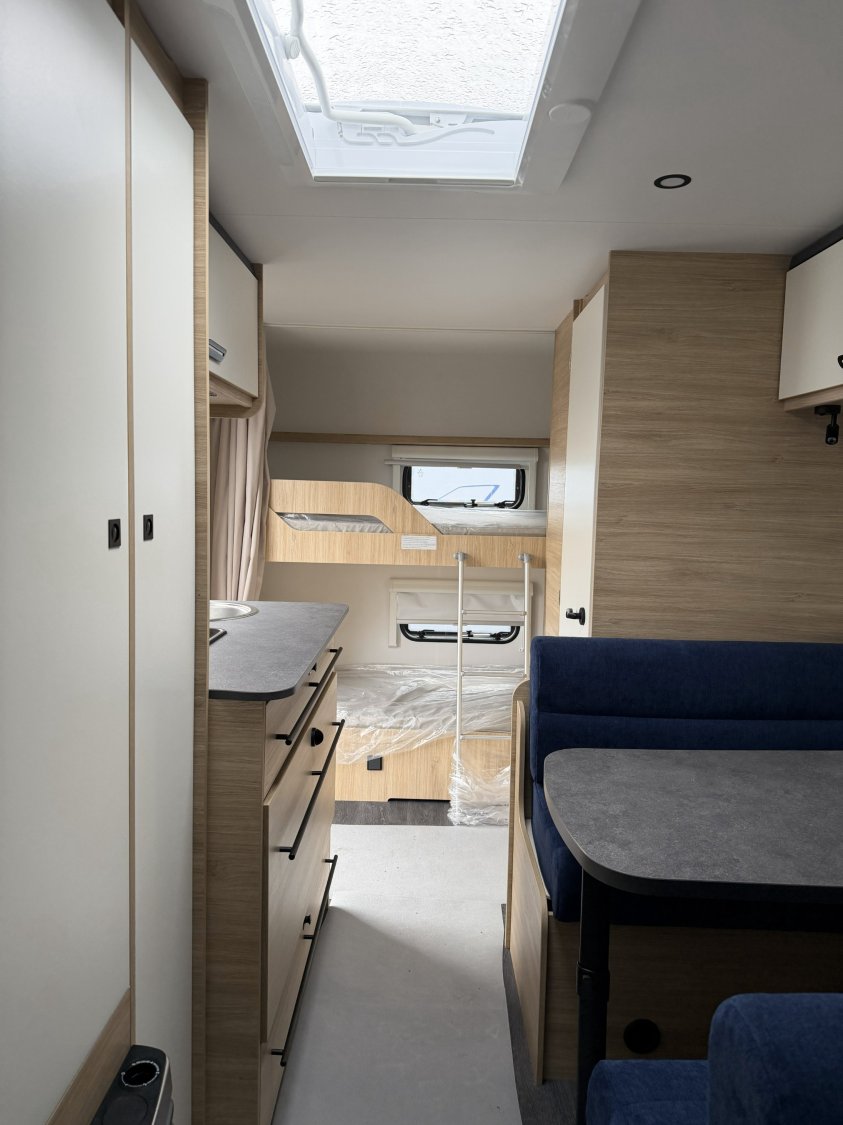 WC CASSETTE, TOLE POLYESTER, 2 LITS SUPERPOSES, SOUTE ARRIERE, ECLAIRAGE LED, IRP, FRIGO XL FREZE, STORES + MOUSTIQUAIRES