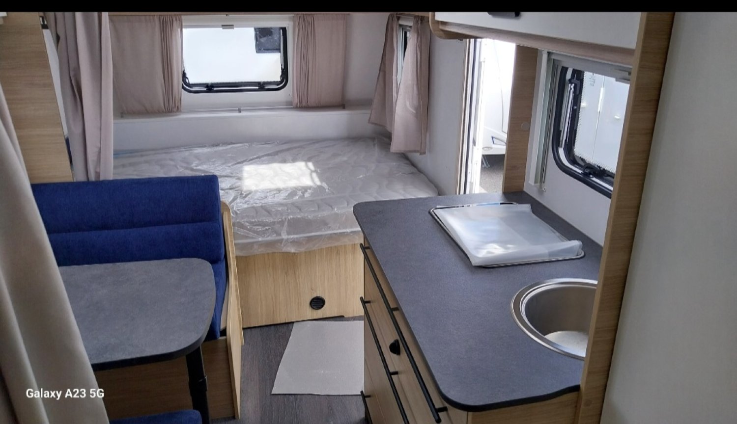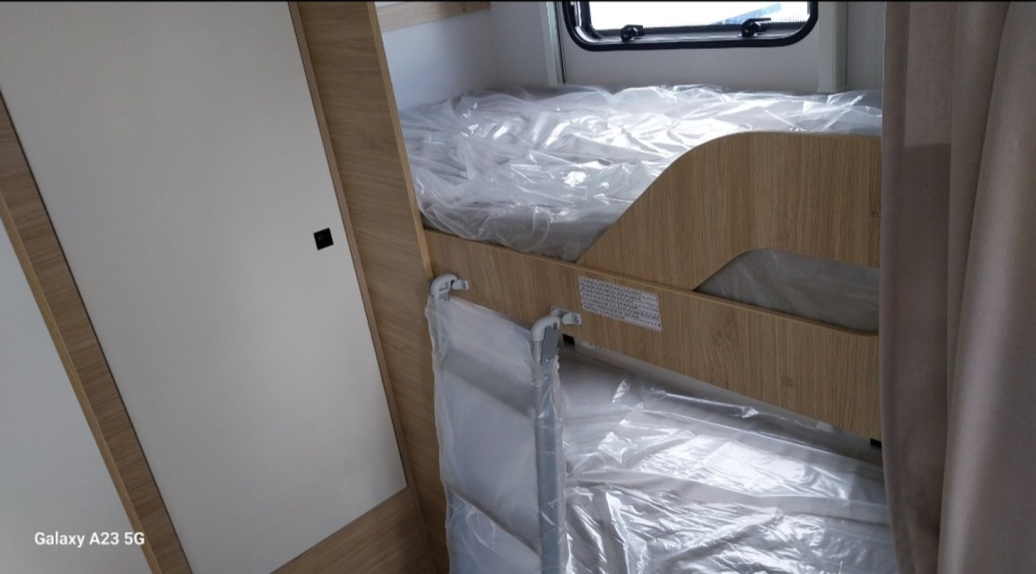 Réfrigérateur à compression 150 L, Soute à vélos, Parois latérales polyester, Prises 230 V / USB, Rail auvent, Regroupement des eaux usées, Réchaud 2 feux, Lanterneau SDB, Toit polyester, Vérrins rallongés avant, Store combi occultant + moustiquaire, WC Cassette, Baies ouvrantes double vitrage, Enjoliveurs de roue, Bac de propreté, Eclaireur exterieur LED