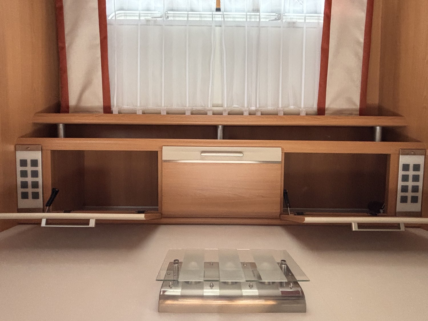 STORE EXTERIEUR, CHAUFFE-EAU, CHAUFFAGE 220V, MICRO-ONDES, TV, JANTES ALU, PORTE VELOS SUR FLECHE, DEPLACE CARAVANE, ECLAIRAGE EXTERIEUR, GRAND FRIGO, ANTENNE HERTZIENNE, RESERVOIR EU PORTABLE, ANTILACETS, PORTILLON EXTERIEUR LATERAL, ROUE DE SECOURS, VERINS DE LIT, DINETTE TRANSFORMABLE EN COUCHAGE, TOLE LISSE, GRANDE PENDERIE, DOUCHE, WC, PORTE SEPARATION CHAMBRE