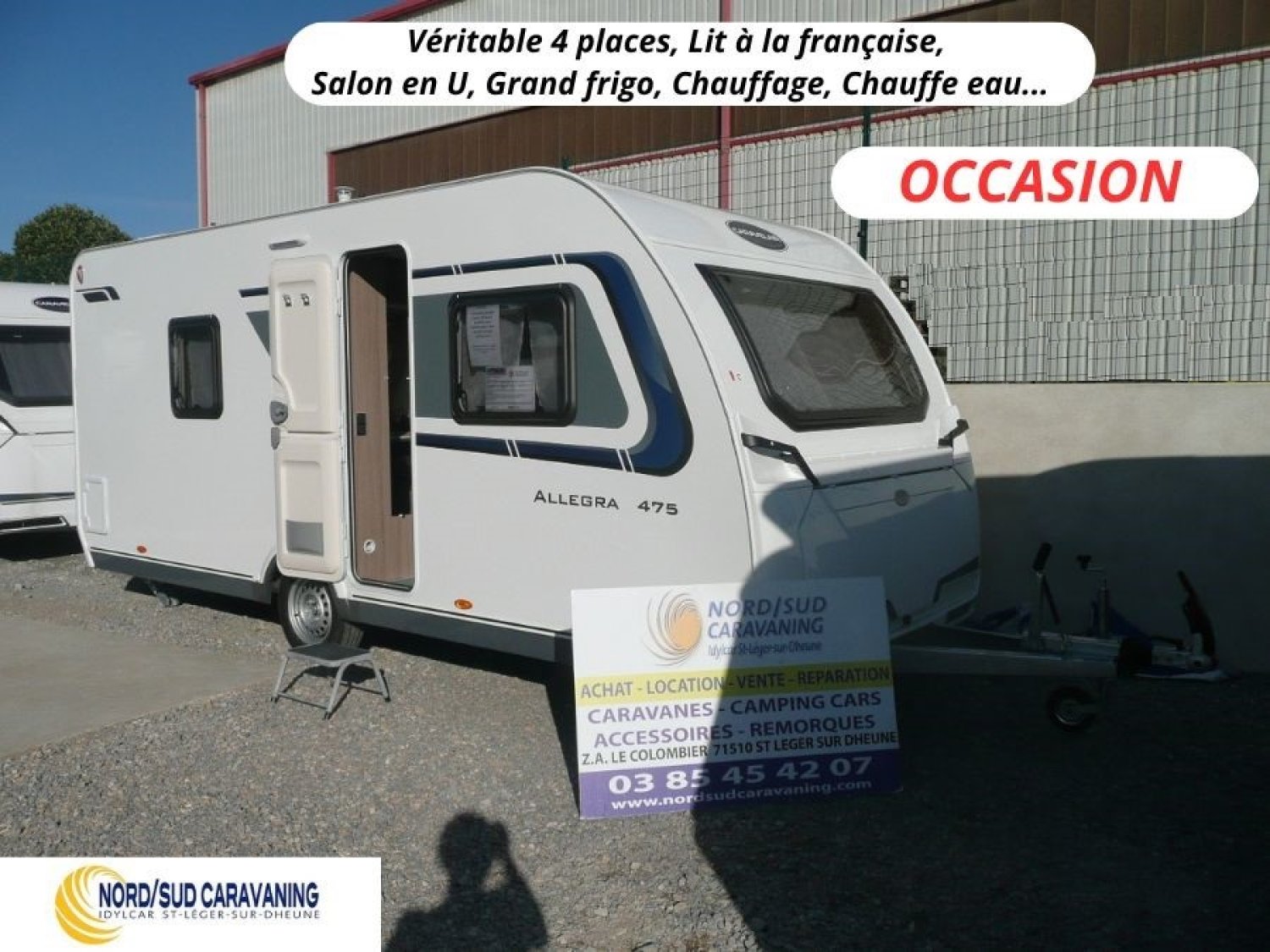Superbe occasion Caravelair Allegra 475, Lit à la française, Salon en U, Grand frigo, Douche, 4 places