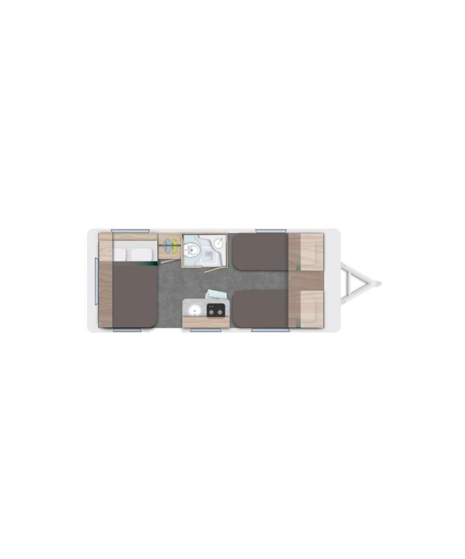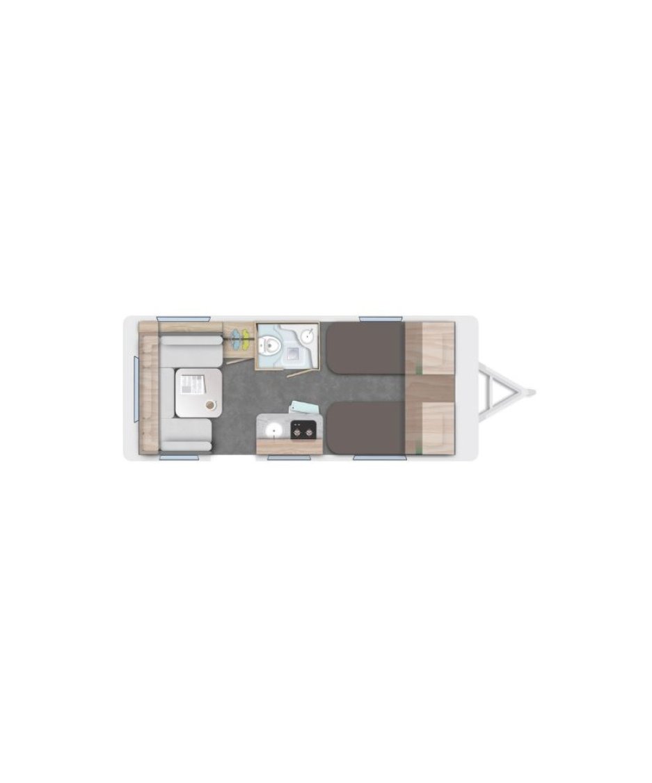 Cette caravane possède un salon en U très cosy. Elle est dotée de lits jumeaux confortables et de nombreux rangements