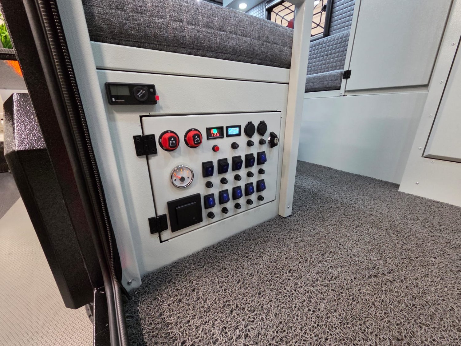 • Panneau de contrôle complet : .1 prise 12V (allume-cigare) .2 prises USB .1 prise 220V Voltmètre digital + interrupteurs
