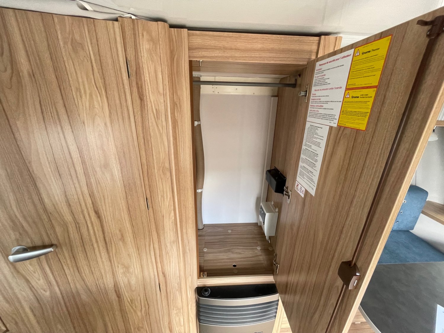 Roue de secoursTrappe de soutePack doucheCouvercle d’évierPrise gaz extérieurChauffe-eau TrumaCoussins confort dinette avantPoubelle de portePack moovingPack Autarcie (batterie cellule 95 Ah AGM, chargeur avec alternateur renforcé intégré)Moustiquaire sur toute la hauteur de la porte à usage facile grâce au guidage latéralPorte-vélos sur timon Thule Caravan Superb pour 2 vélos, charge maximale 60 kg (également adapté aux vélos électriques)Pieds (x4) pour vérins stabilisateurs (afin d’éviter aux vérins de s’enfoncer ou de glisser)Roue jockey avec affichage de charge intégré sur flècheRéservoir eaux usées 22 l, sur roulettes (rangement dans coffre à gaz)Pack prises 230 V supplémentaires : 2 x dans le salon et la cuisine