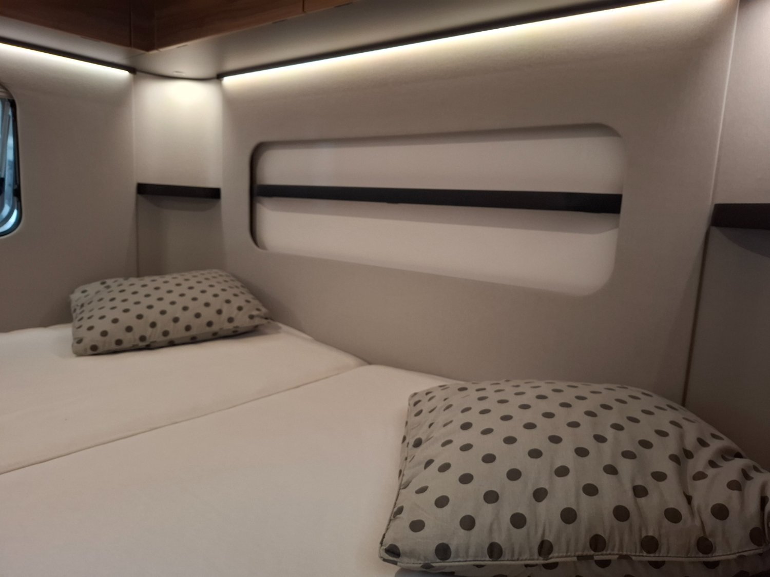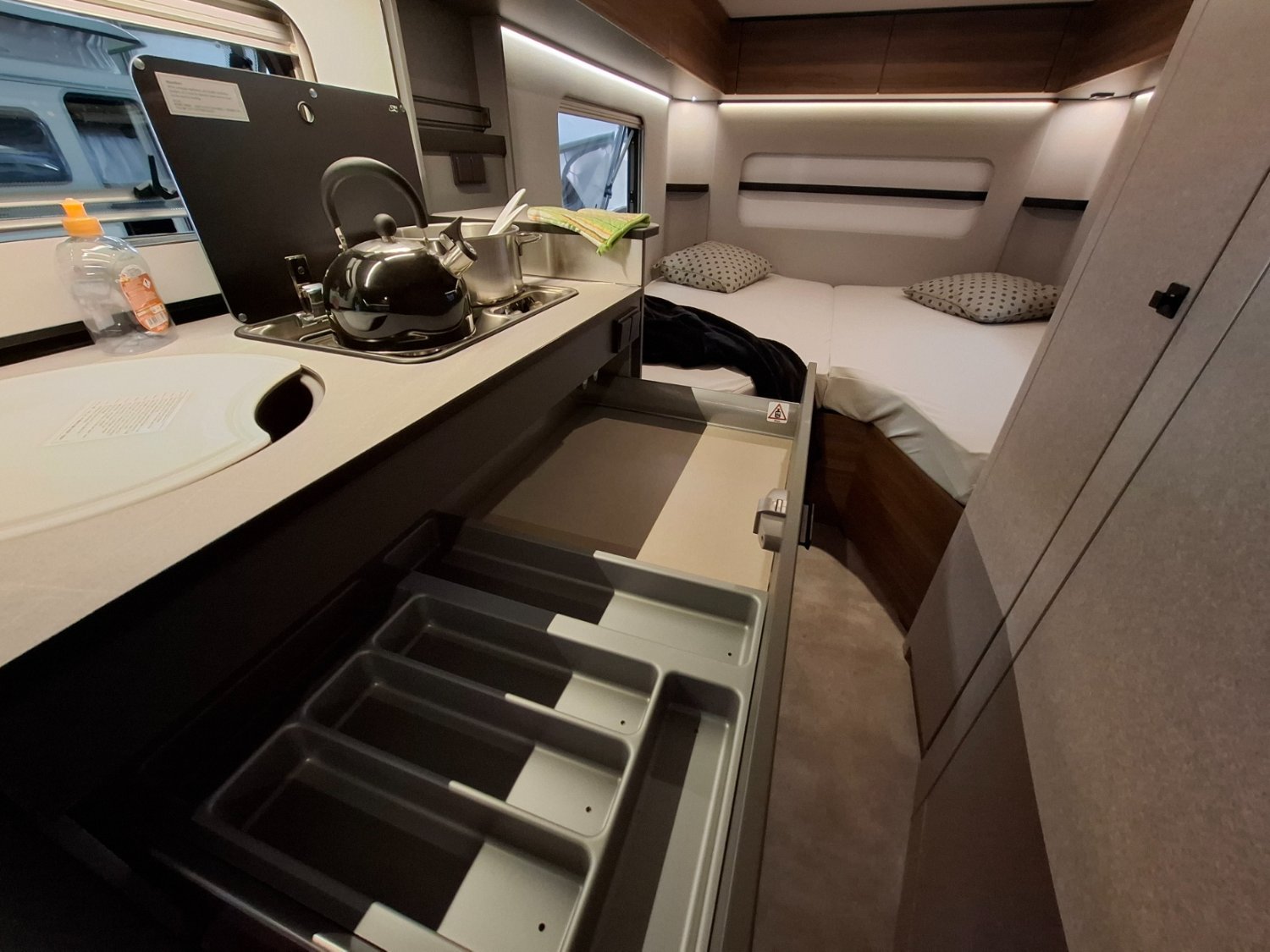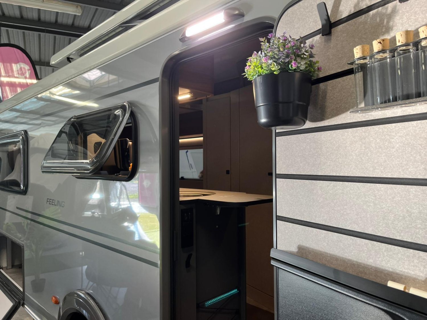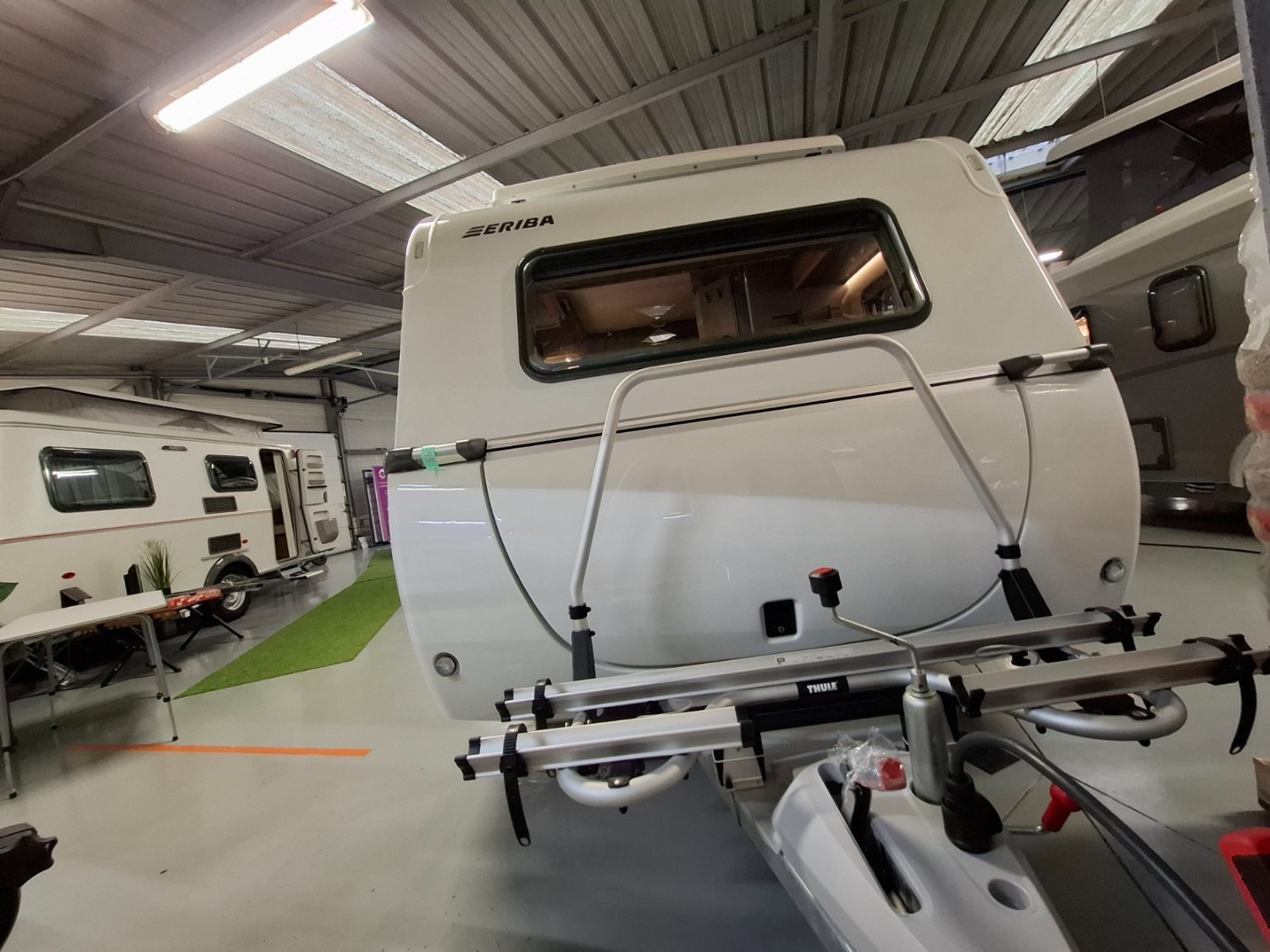 Nouveau design pour l'ERIBA FEELING, caravane aux dimensions compactes et au confort XXL : couchages de grandes dimensions et à l'accès facile, grand réfrigérateur à compression, équipements "douche", chauffage, eau chaude et porte-vélos sur timon. Pour la mise à disposition, nous offrons le store de toit posé. Laissez-vous emporter par la qualité de fabrication, le design chic et sobre et l'ensemble de ses fonctionnalités.