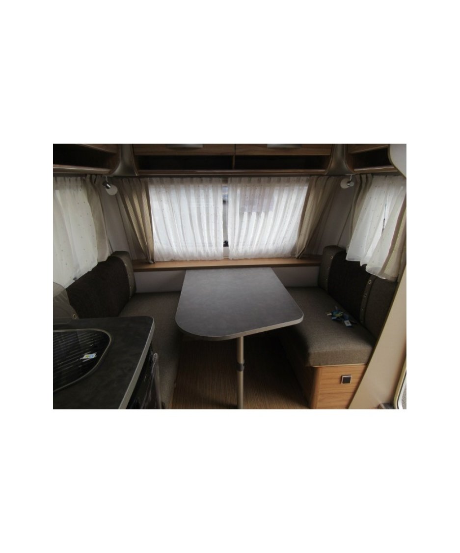 Produit incluant l'augmentation de PTAC, roue de secours + support sous plancher, poubelle de porte ERIBA, moustiquaire de porte, pommeau de douche + barre et rideau de douche, couvercle d'évier avec planche à découper et chauffe eau Truma therme 5 L