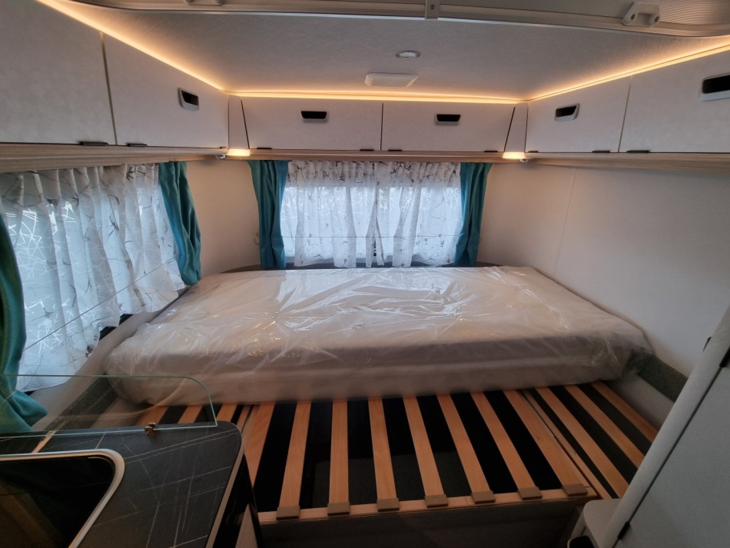 PACK CONFORT : Moustiquaire sur toute la hauteur de la porte à usage facile grâce au guidage latéral Poubelle intégrée à la porte cellule Miroir grossissant supplémentaire avec fixation magnétique Couvercle d évier avec planche à découper pour évier en acier inoxydable Stores plissés confort Prises supplémentaires (2 x 230 V et 1 x USB double)