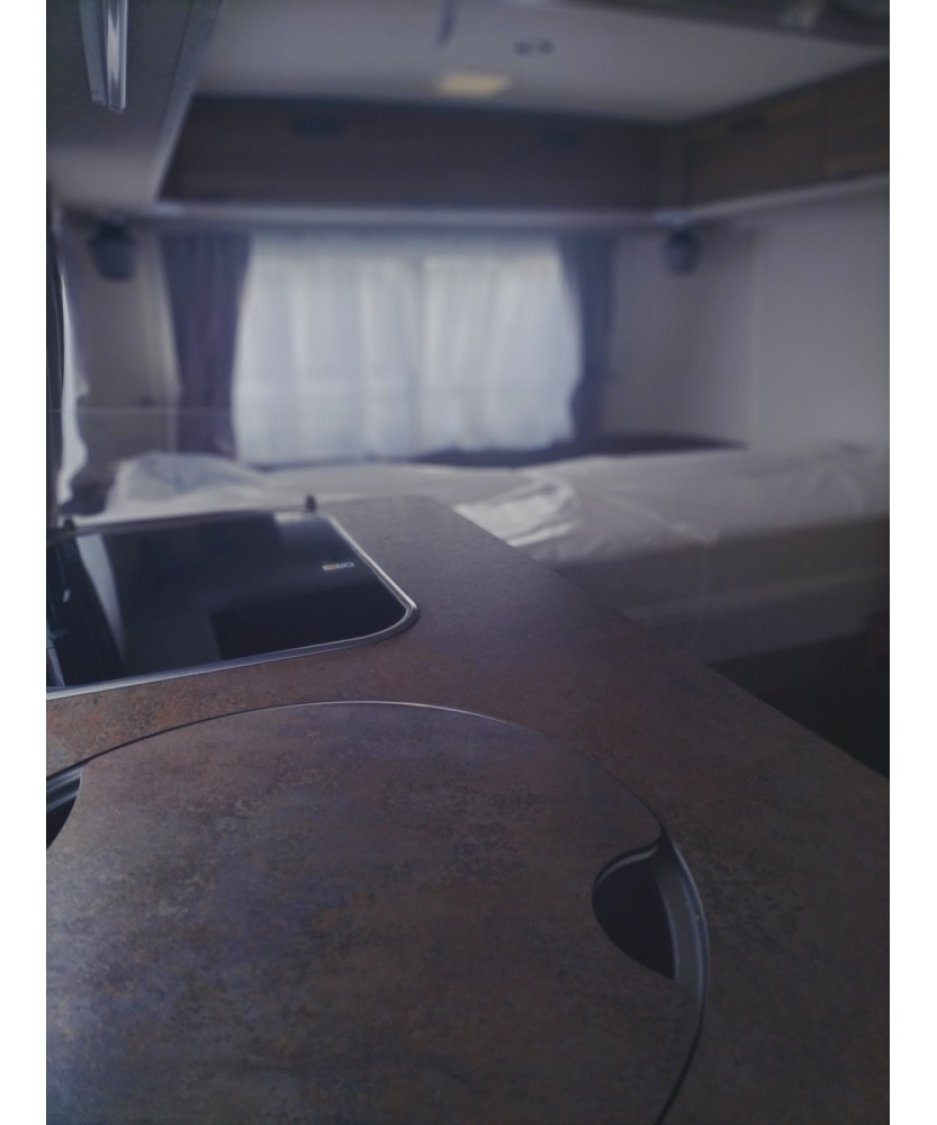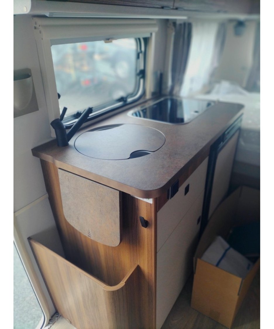 Roue de secours / Trappe extérieure arrière droit /Douchette et rideau de douche / Réservoir eaux propres 30L / Truma therme / coussins supplémentaires pour dinette avant / Pack Chrome / Pack confort