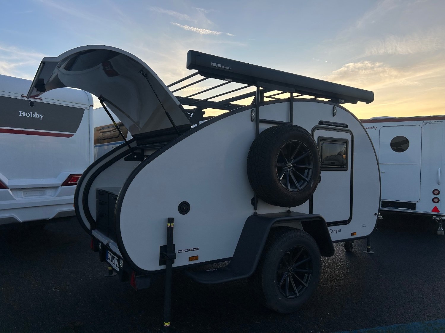 Caravane compacte au design tout-terrain, idéale pour les voyageurs en quête d’aventure et d’autonomie. Ce modèle est parfait pour partir à deux, en toute liberté, sur route comme sur chemins plus engagés.