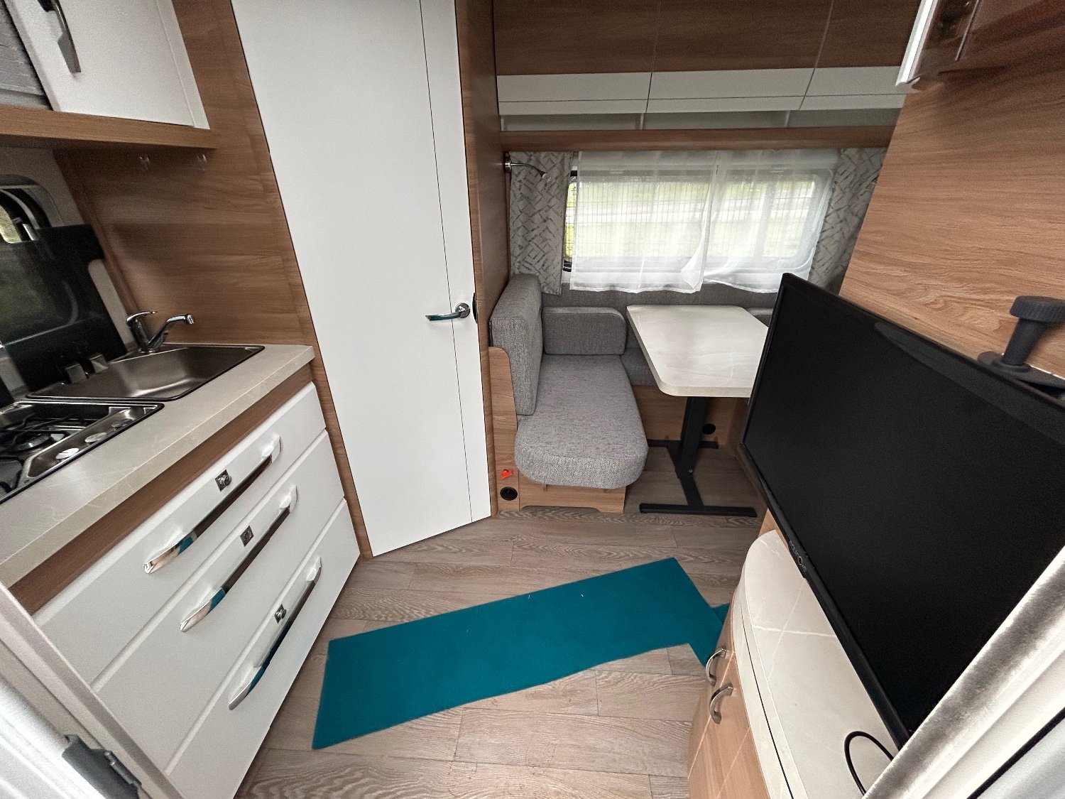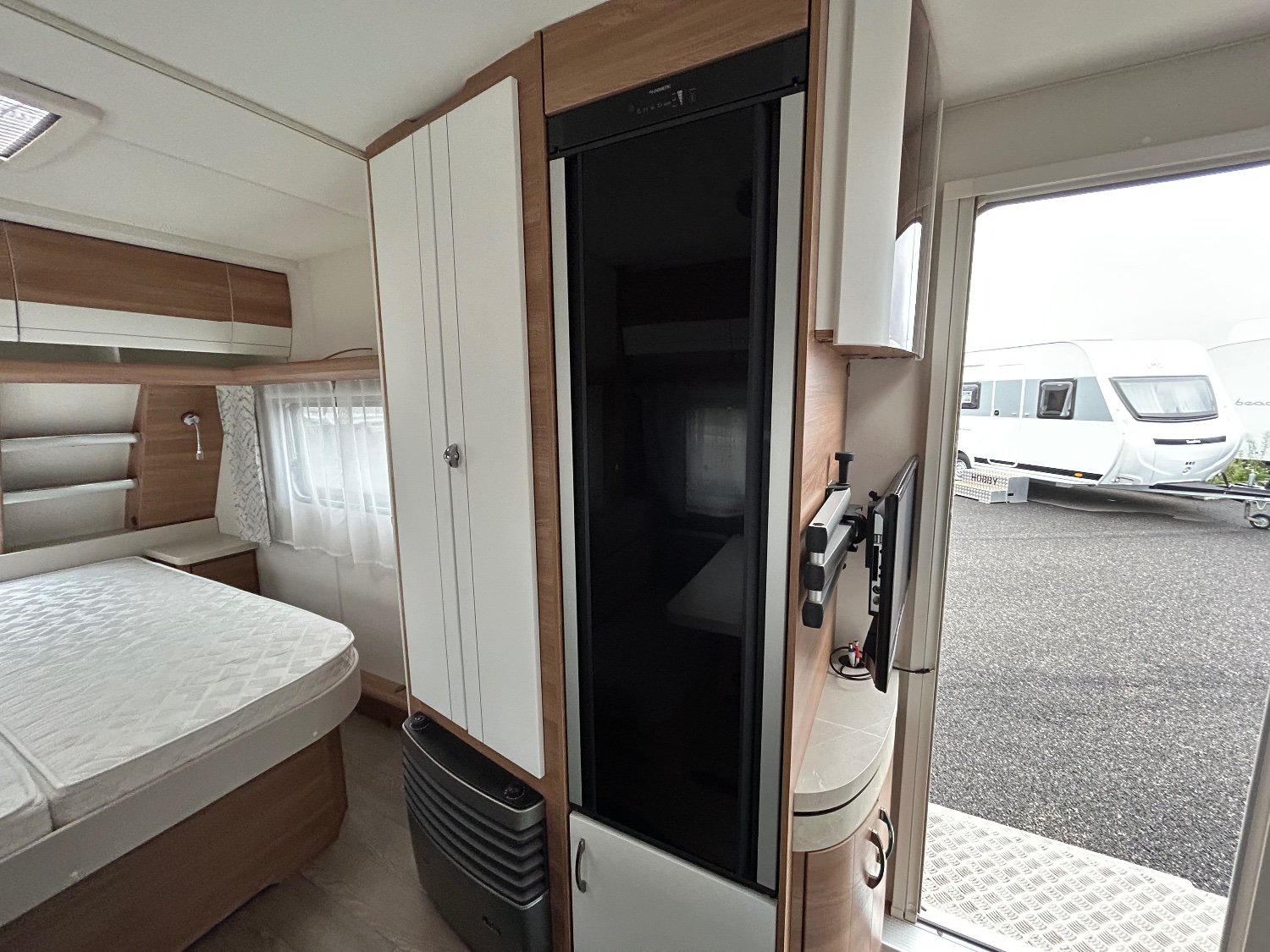 Top des ventes en France, c’est le modèle le plus petit de la marque Hobby avec lit central avant. Cette caravane Hobby d’occasion est dans un état proche du neuf. Elle possède une cuisine, une dinette, un compartiment toilette arrière, une dinette latérale et son lit central à l’avant.