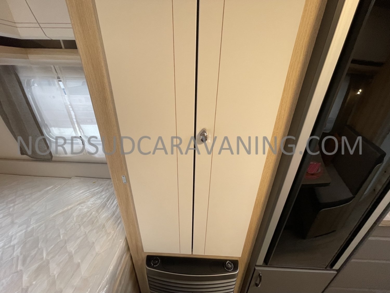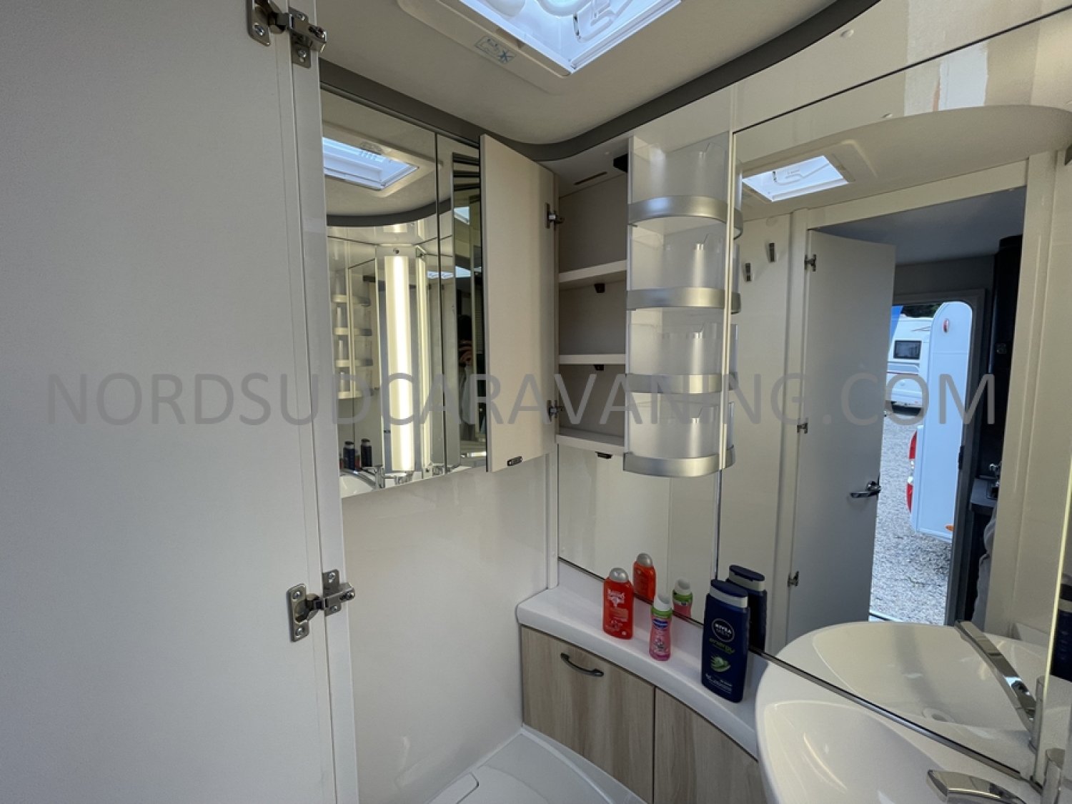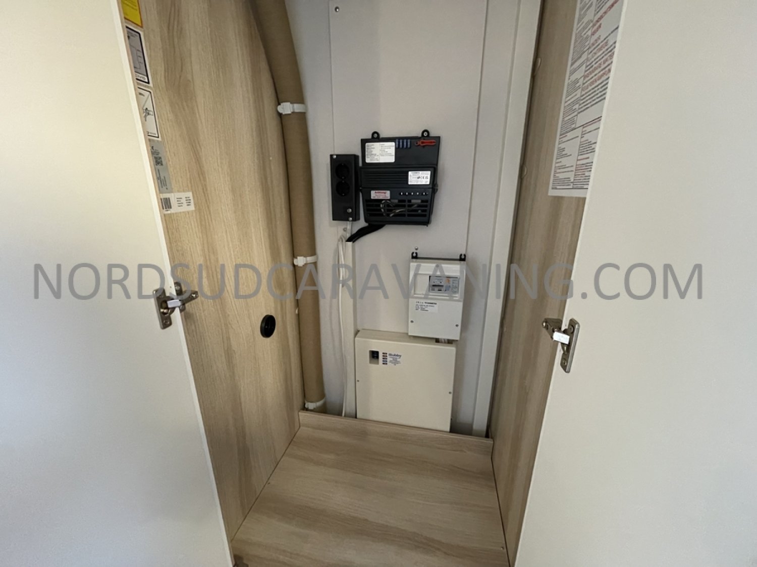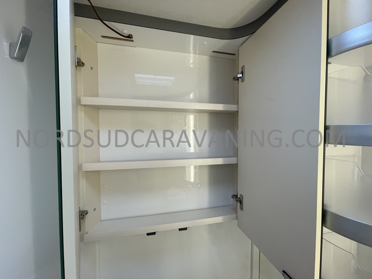 Pratique avec ses nombreux rangements (soute, penderie, placards de pavillon….), elle est très fonctionnelle avec sa cuisine équipée d’un réchaud 3 feux et évier inox protégés par un couvercle en verre et d’un réfrigérateur à absorption 133L avec double ouverture. Sans oublier son coin toilette avec WC à cassette, bac de propreté, lavabo et miroirs. Elle vous offrira tout le confort comme à la maison !