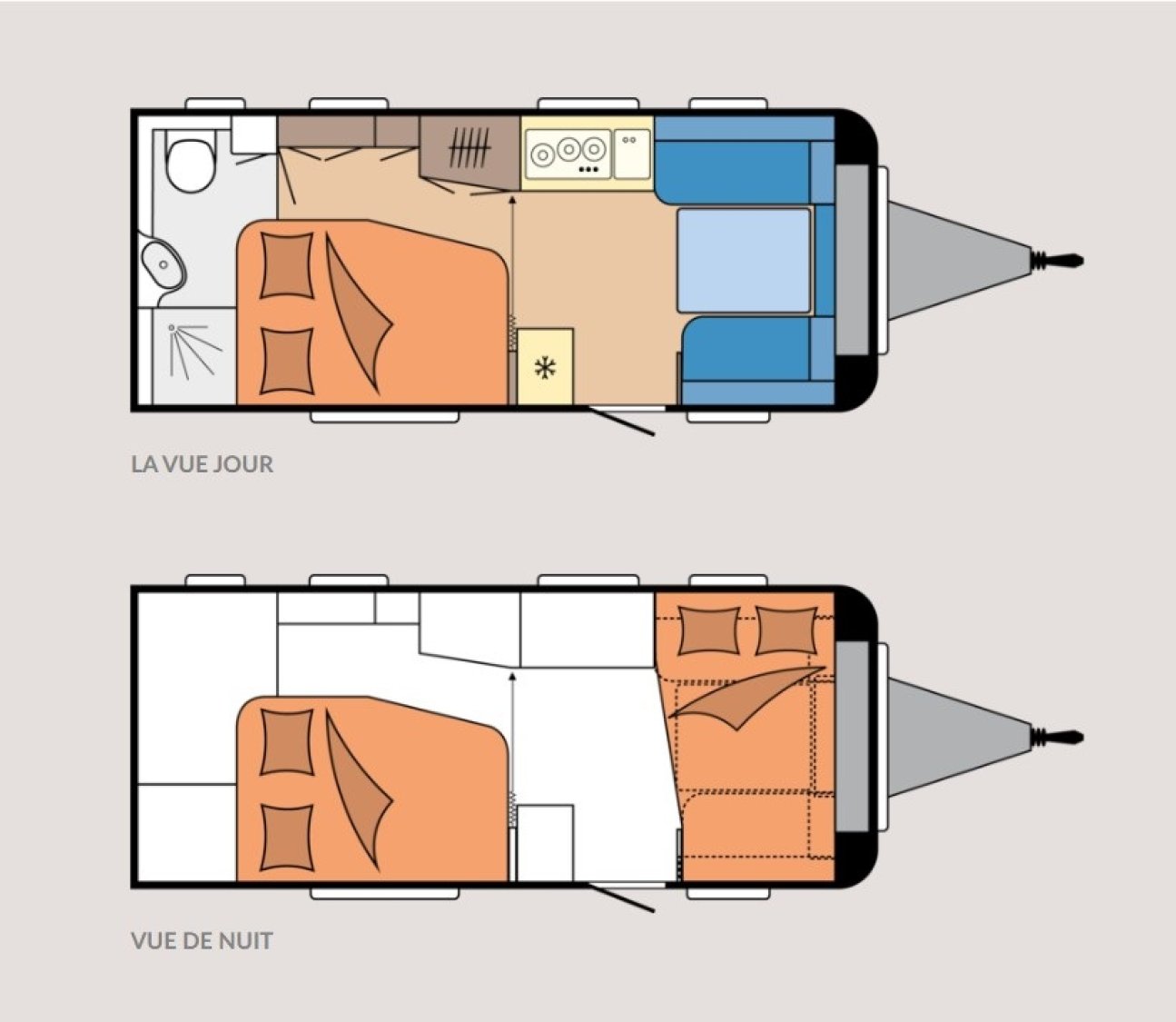 Spacieuse avec son maxi salon transformable en couchage d’appoint, sa chambre parentale. Profitez d’une superbe salle de bain transversale arrière, équipée d’une douche indépendante, d’un wc et de nombreux rangements.
