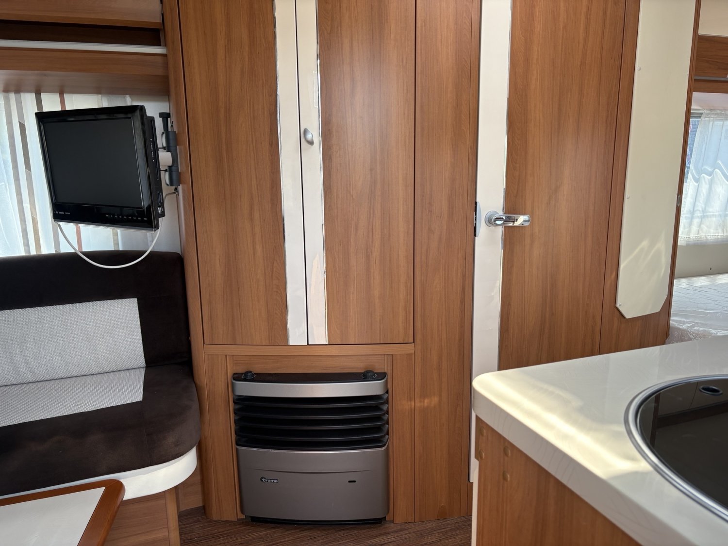 PORTE D'ENTREE AVEC MOUSTIQUAIRE, MARCHE PIED 1 MARCHE, VERINS DE STABILISATION, CACHE FLECHE EN ABS, CHAUFFAGE GAZ TRUMA S 3004, CHAUFFE-EAU TRUMA THERME, ECLAIRAGE AUVENT, ECLAIRAGE D'AMBIANCE LED, AIR PULSE, RECHAUD 3 FEUX INOX AVEC COUVERCLE, REFRIGERATEUR 140 L, SOMMIER A LATTES, WC CASSETTE EXTRACTIBLE DE L'EXT., MATELAS A RESSORTS 120MM, ANTILACET, LANTERNEAU 700 x 500, PORTE D'ENTREE AVEC 2 PARTIES