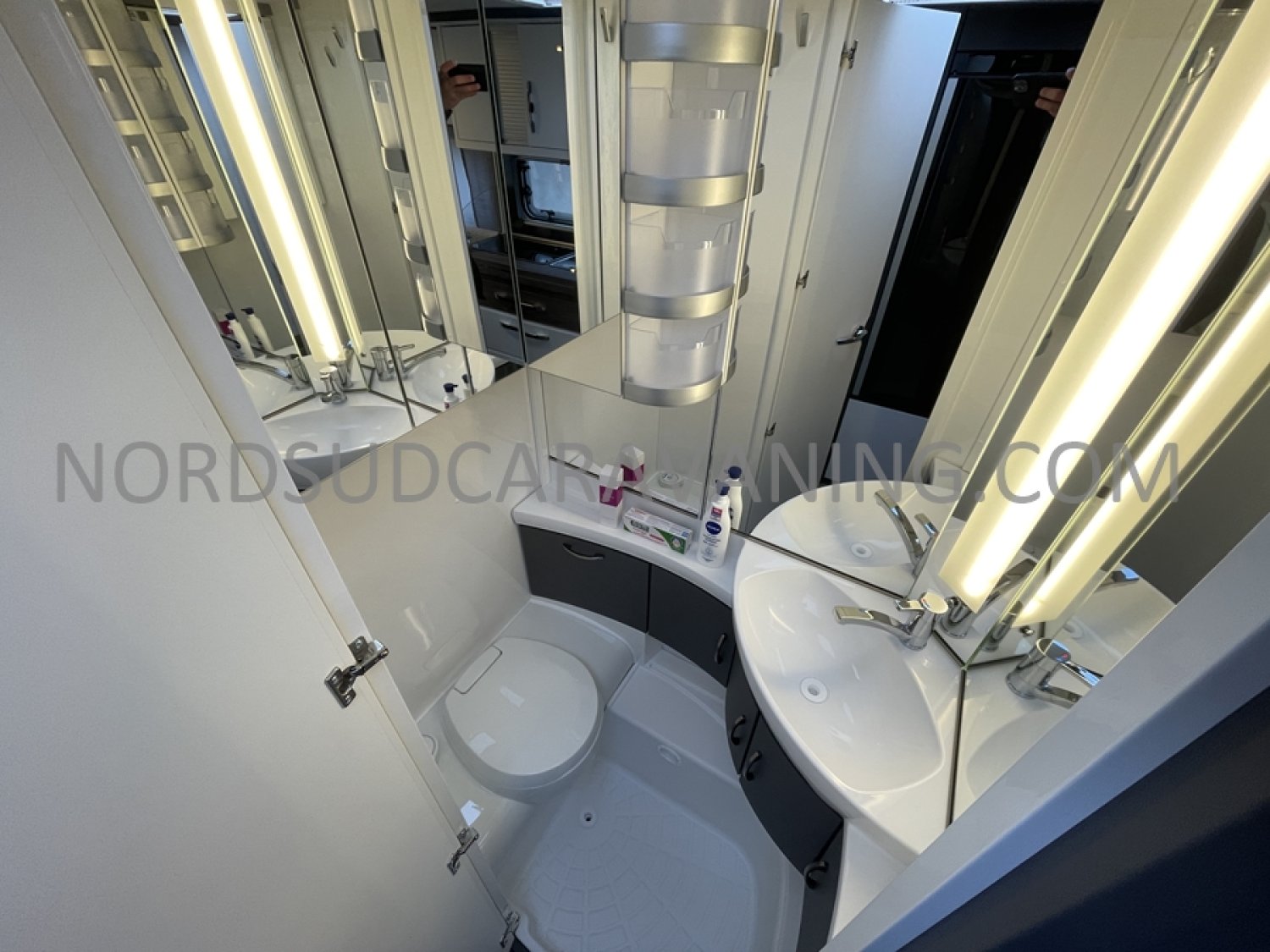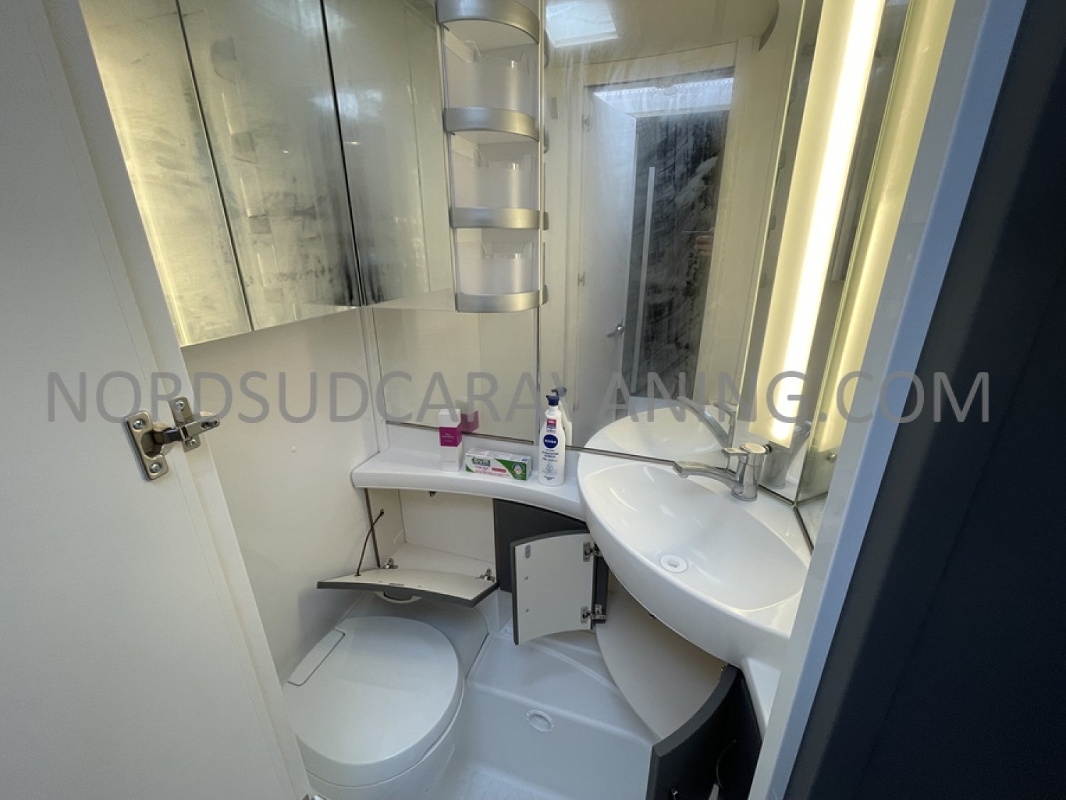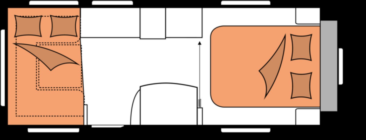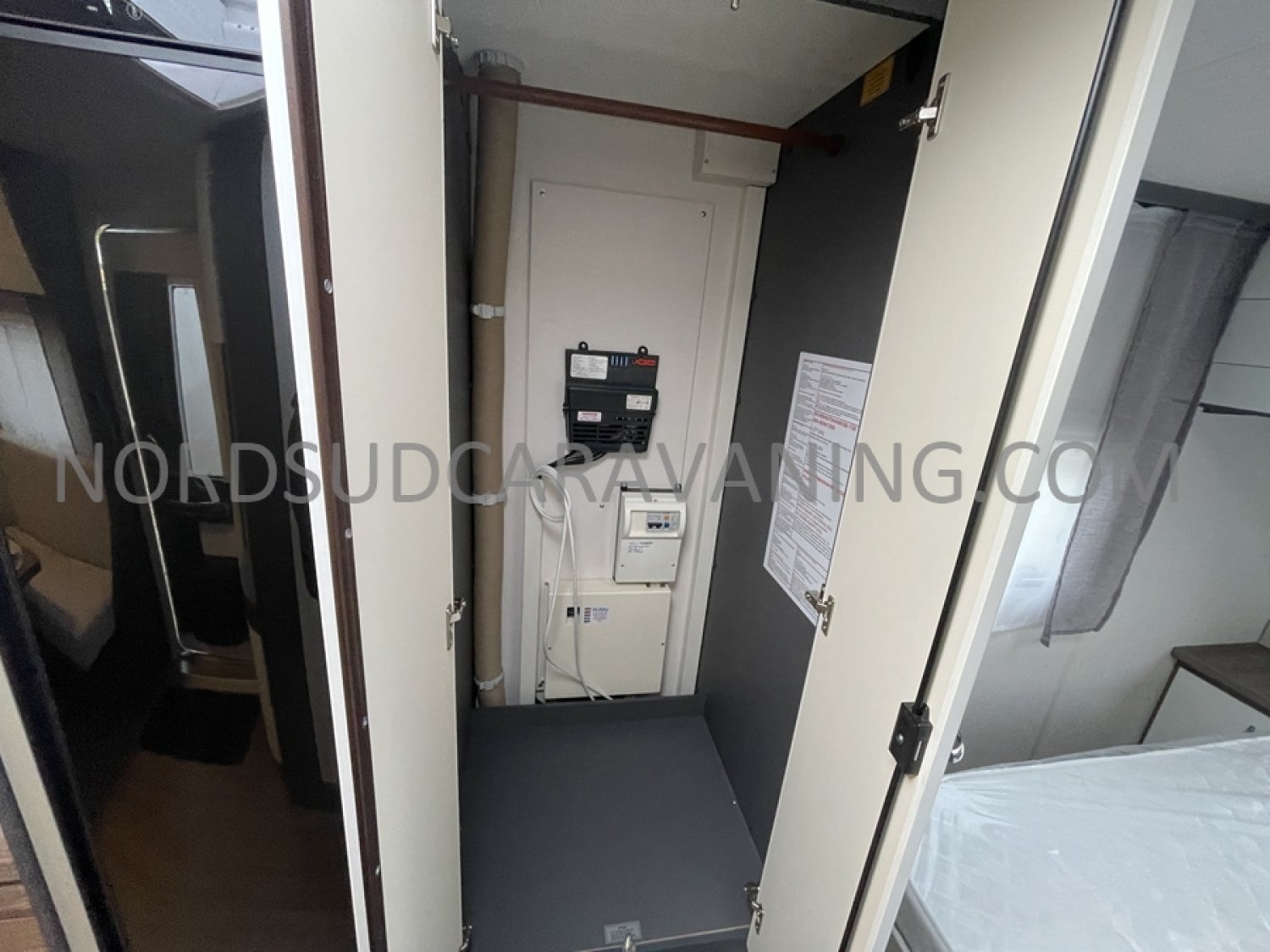 Cette superbe caravane est dotée d’un joli salon en U spacieux et convivial pour en profitez en couple, en famille ou entre amis. Il est transformable en couchage pour deux personnes. Son lit central vous permettra de profiter d'un espace de repos confortable facilement accessible des deux côtés et avec de multiples espaces de rangement. Sa cuisine équipée d’un réchaud 3 feux, d’un évier, d’un réfrigérateur congélateur avec double ouverture, qui ravira le cuisinier ou la cuisinière. Elle dispose également d'une salle de bain compacte, équipée d’un WC, d'un lavabo et d'un bac de propreté qui vous apportera un maximum de confort.