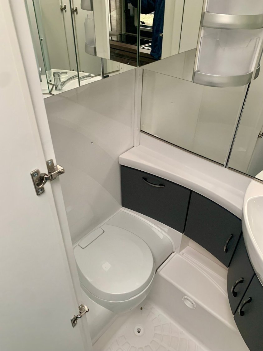 Réservoir eau propre : 47L Réservoir eau usée : 23L , Baie avant avec store et moustiquaire intégrés , Baies ouvrantes, à double vitrage et teintées , Lit central Lit dinette Salon en U.
