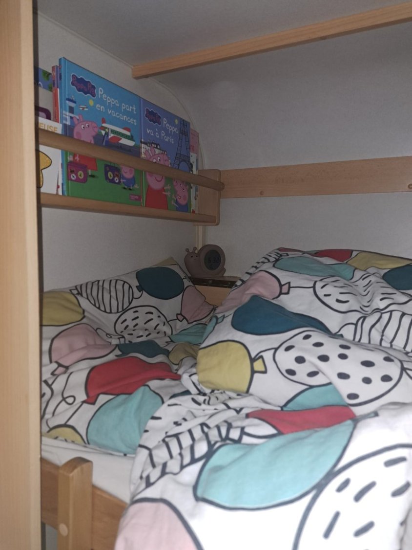 Equipée pour 4 places couchage. (1 lit double transformable en banquettes et un lit superposé pour 2)