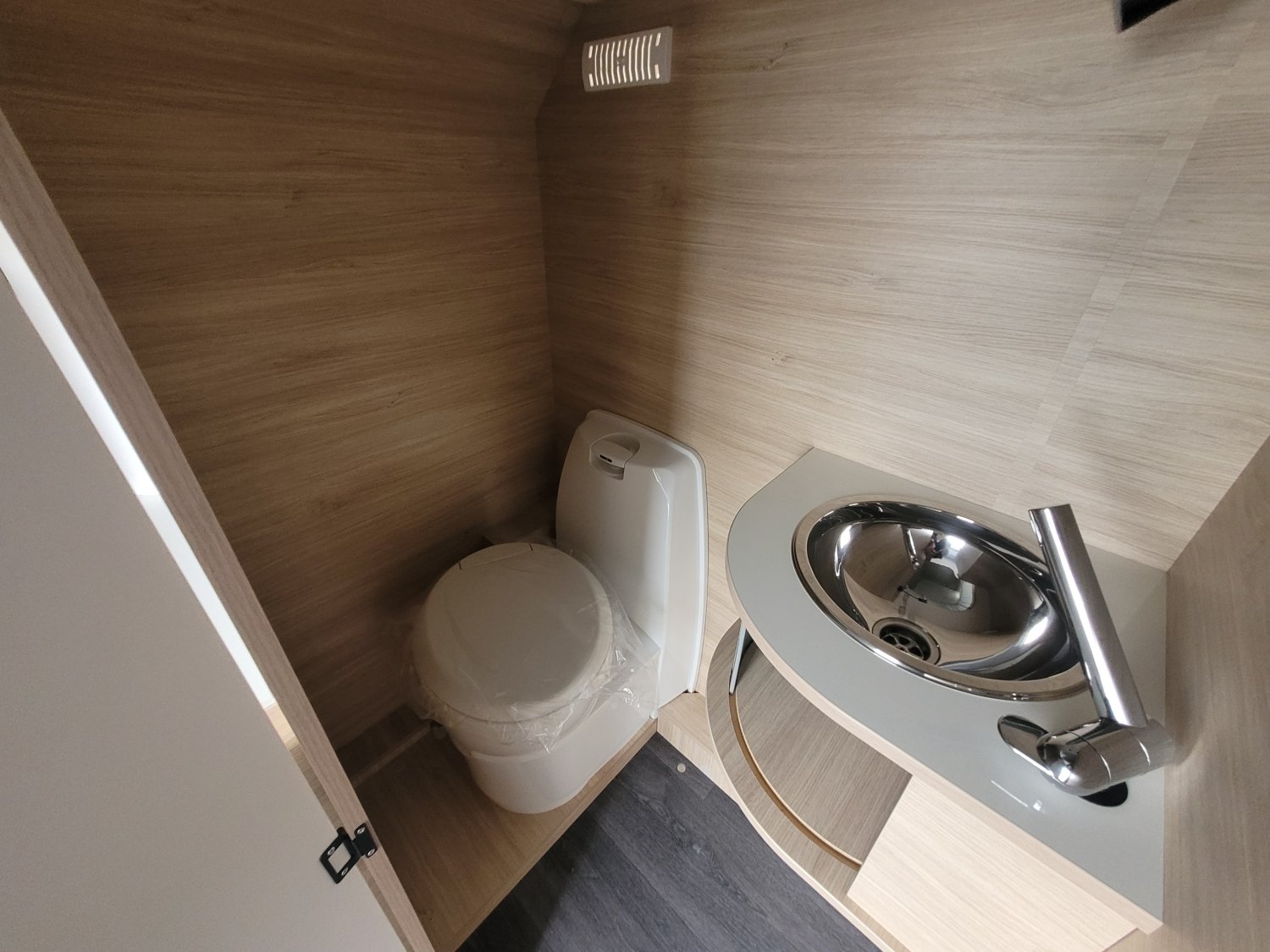 CUVE INOX, FRIGO TRIMIXTE 85L, RECHAUD 2 FEUX, WC A CASSETTE
