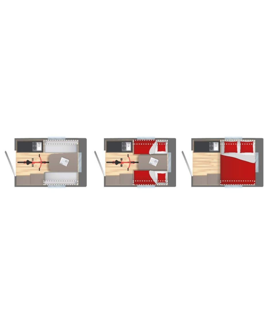 Dinette avant transformable en couchage 2 personnes : 190 x 186 cm
