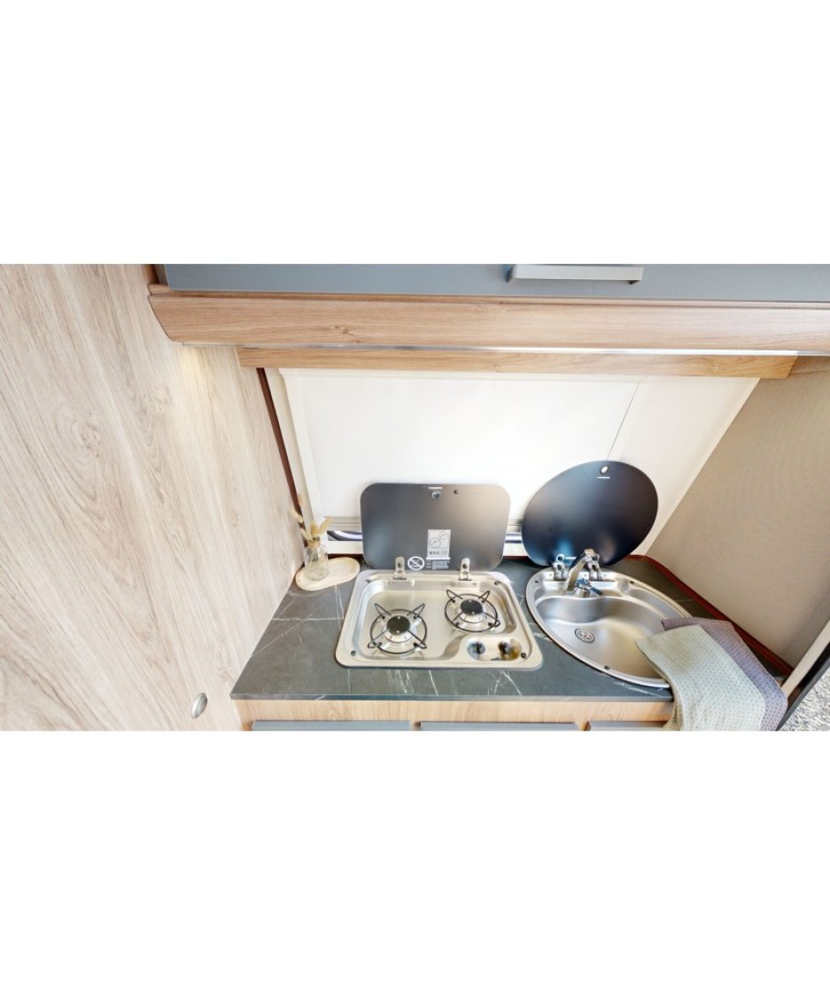Cuisine équipée avec évier et plaque 2 feux à gaz