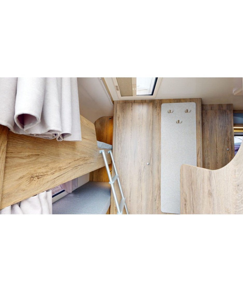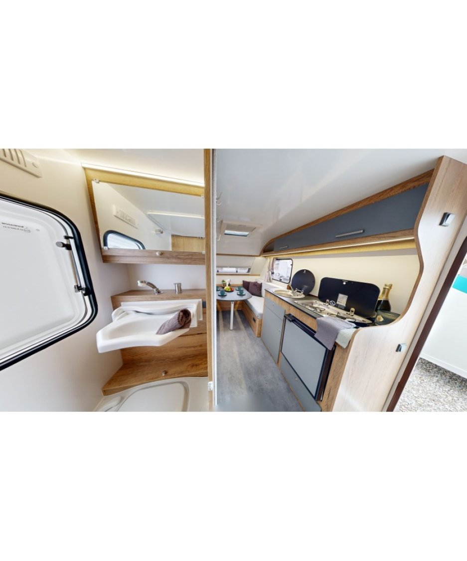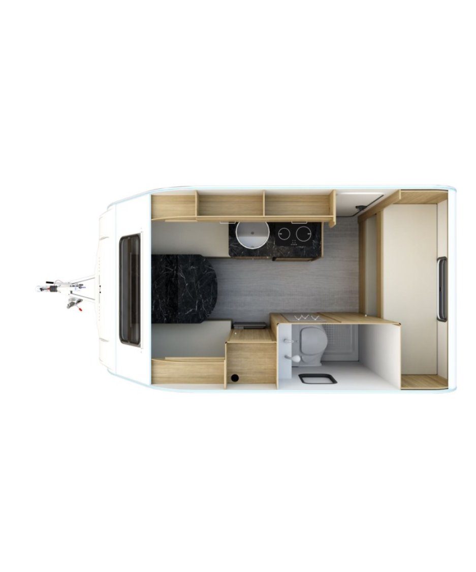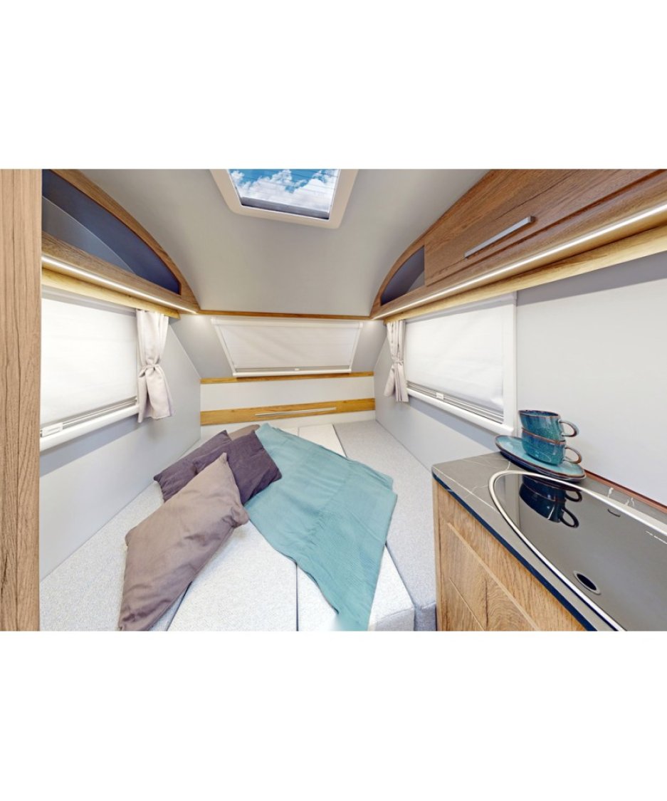 La N CROSS est le plus grand modèle des caravanes NEVADO. Elle possède un intérieur moderne qui pourra accueillir une famille de trois ou quatre personnes selon modèle.