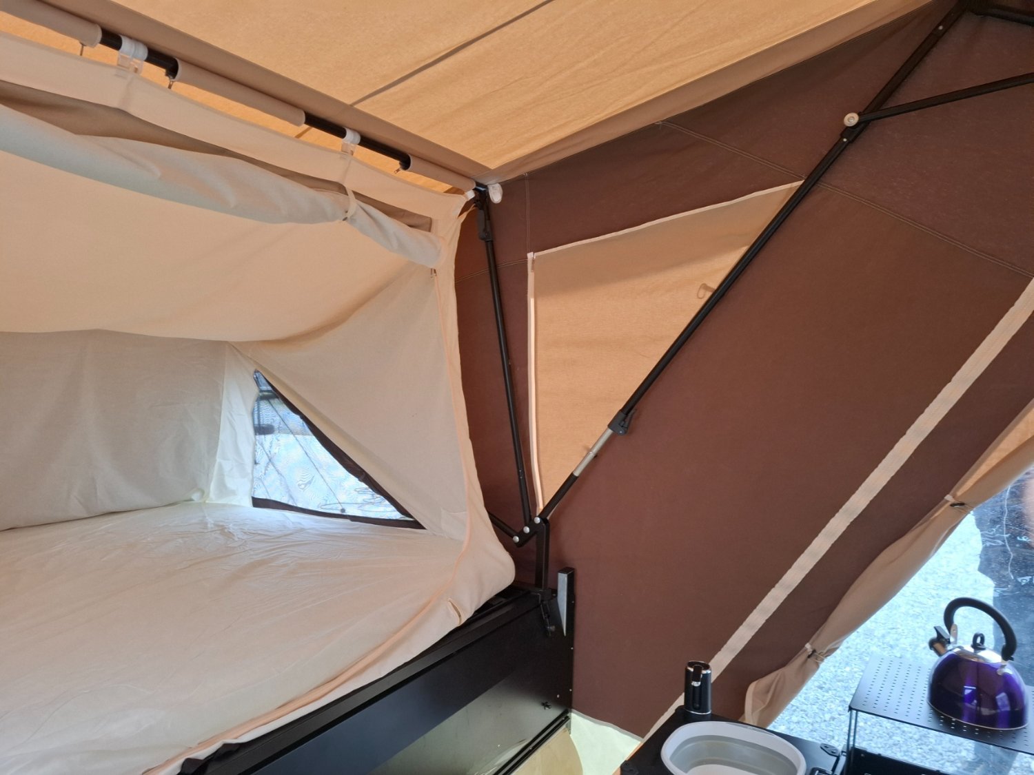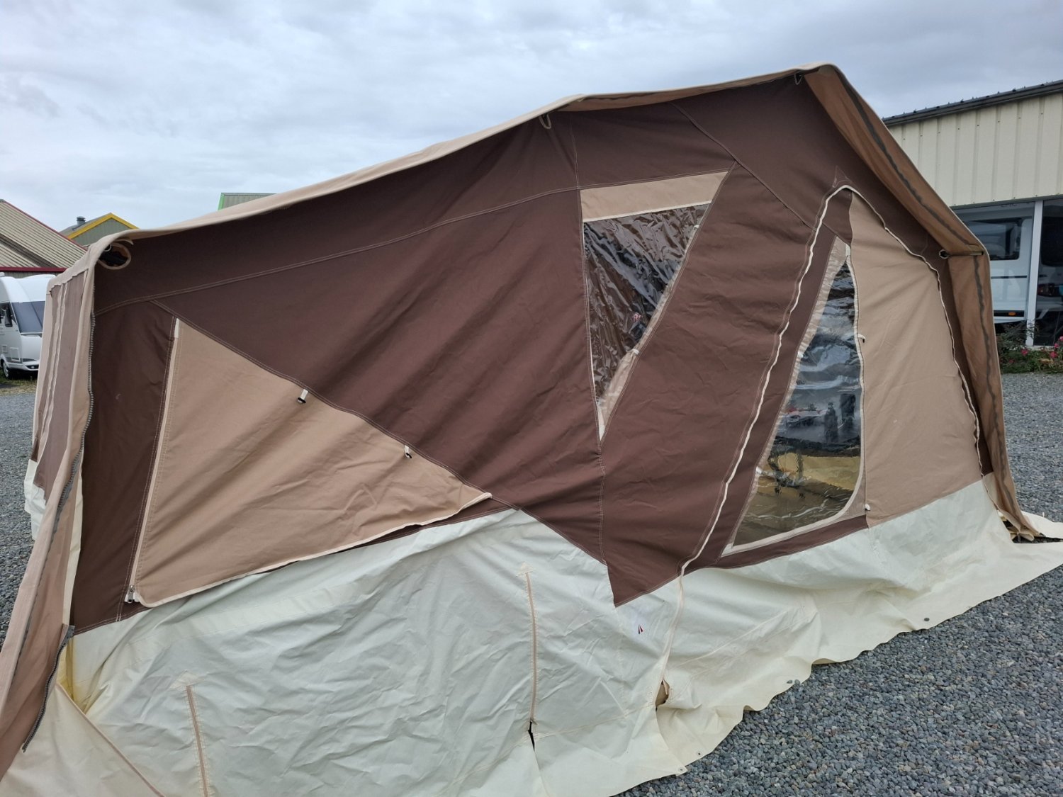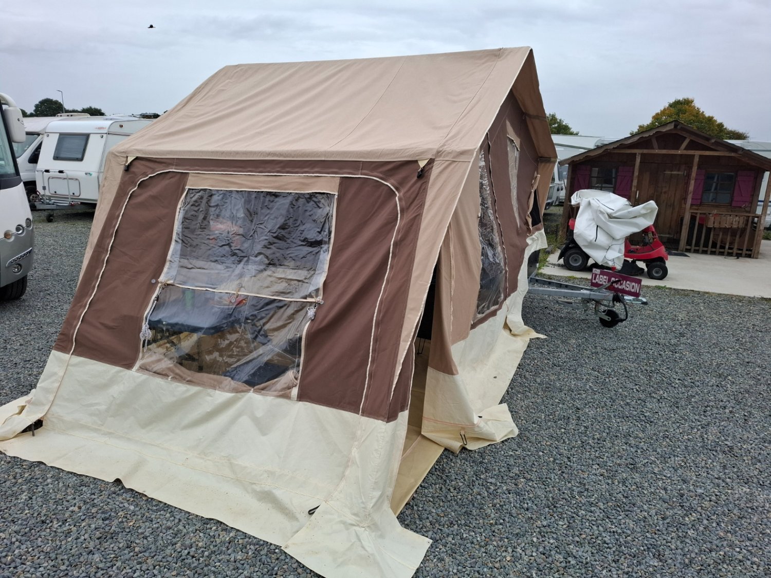 La caravane pliante toile est freinée.